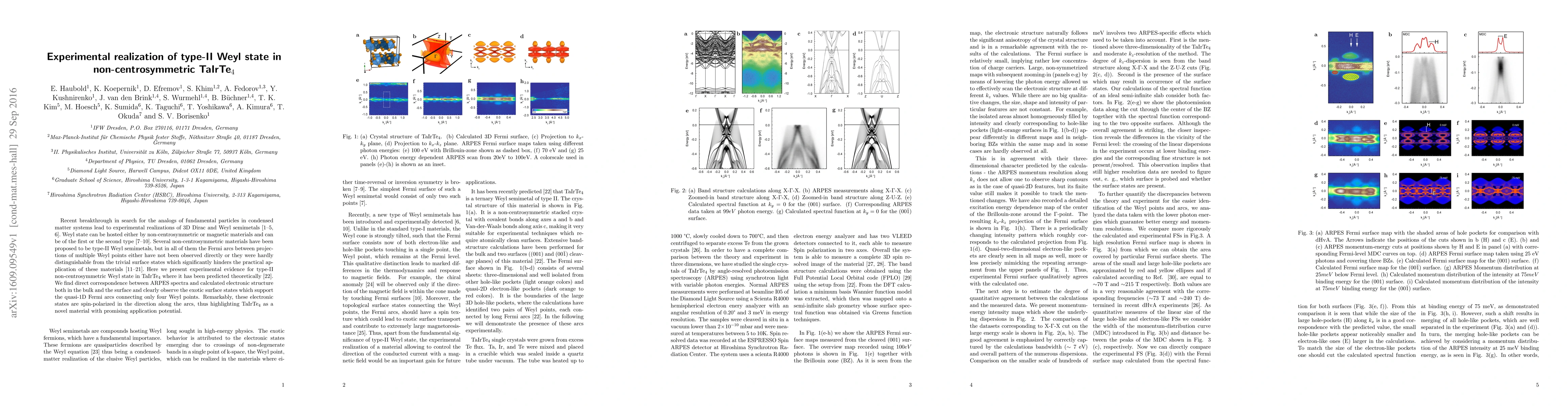 Recent breakthrough in search for the analogs of fundamental particles in condensed matter systems lead to experimental realizations of 3D Dirac and Weyl semimetals. Weyl state can be hosted either by non-centrosymmetric or magnetic materials and can be of the first or the second type. Several non-centrosymmetric materials have been proposed to be type-II Weyl semimetals, but in all of them the Fermi arcs between projections of multiple Weyl points either have not been observed directly or they were hardly distinguishable from the trivial surface states which significantly hinders the practical application of these materials. Here we present experimental evidence for type-II non-centrosymmetric Weyl state in TaIrTe$_4$ where it has been predicted theoretically. We find direct correspondence between ARPES spectra and calculated electronic structure both in the bulk and the surface and clearly observe the exotic surface states which support the quasi-1D Fermi arcs connecting only four Weyl points. Remarkably, these electronic states are spin-polarized in the direction along the arcs, thus highlighting TaIrTe$_4$ as a novel material with promising application potential.