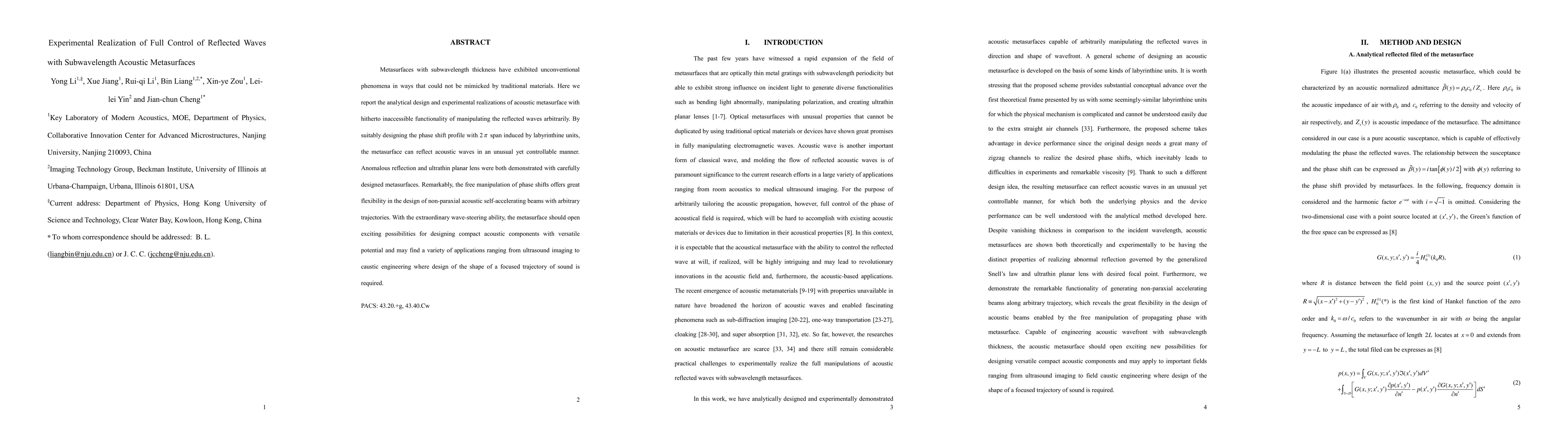 This paper reports the successful design and experimental demonstration of subwavelength acoustic metasurfaces that can fully control reflected waves, showcasing unprecedented functionalities like anomalous reflection and ultrathin planar lenses. The metasurface's ability to manipulate phase shifts allows for the creation of non-paraxial or paraxial acoustic beams with customizable trajectories, promising applications in ultrasound imaging and field caustic engineering.