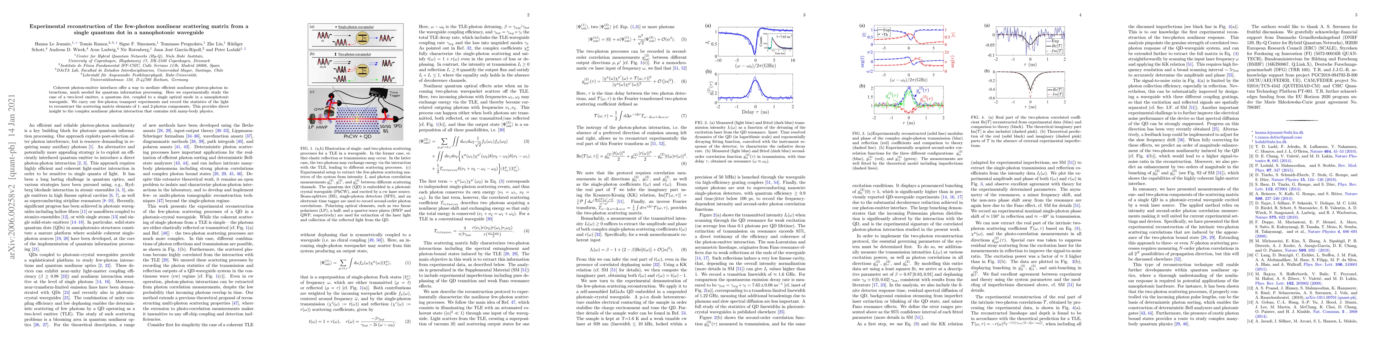 Coherent photon-emitter interfaces offer a way to mediate efficient nonlinear photon-photon interactions, much needed for quantum information processing. Here we experimentally study the case of a two-level emitter, a quantum dot, coupled to a single optical mode in a nanophotonic waveguide. We carry out few-photon transport experiments and record the statistics of the light to reconstruct the scattering matrix elements of 1- and 2-photon components. This provides direct insight to the complex nonlinear photon interaction that contains rich many-body physics.