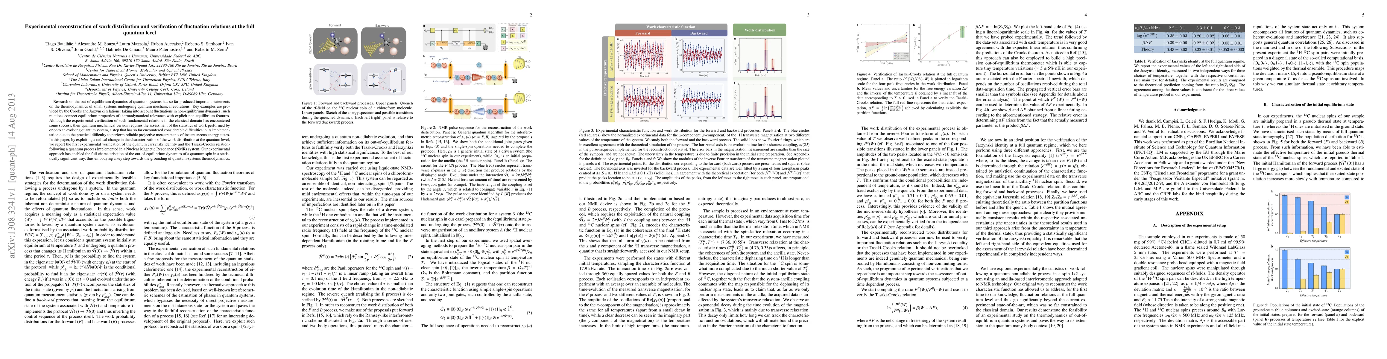 This paper reports the first experimental verification of quantum fluctuation relations, specifically the Jarzynski identity and the Tasaki-Crooks relation, using a Nuclear Magnetic Resonance (NMR) system. The experimental approach allows for the full characterization of quantum work distribution, marking a significant step towards grounding the thermodynamics of quantum systems.