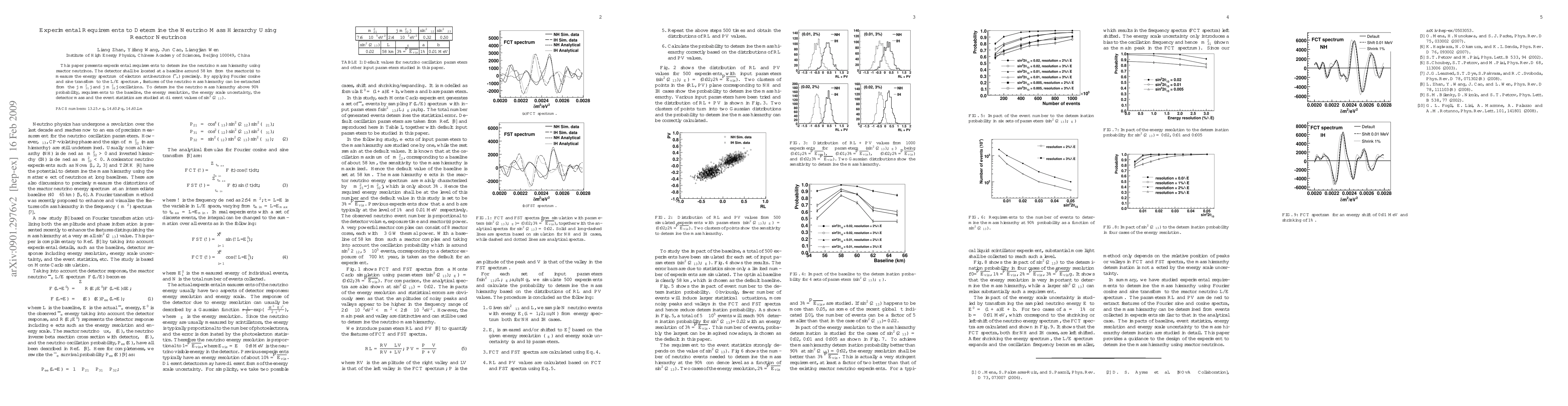 This paper outlines experimental requirements for determining the neutrino mass hierarchy using reactor neutrinos, emphasizing a detector at 58 km from the reactor to measure electron antineutrino energy spectra. The analysis involves Fourier transforms to extract oscillation features, focusing on achieving 90% probability with considerations for baseline, energy resolution, detector mass, and event statistics.