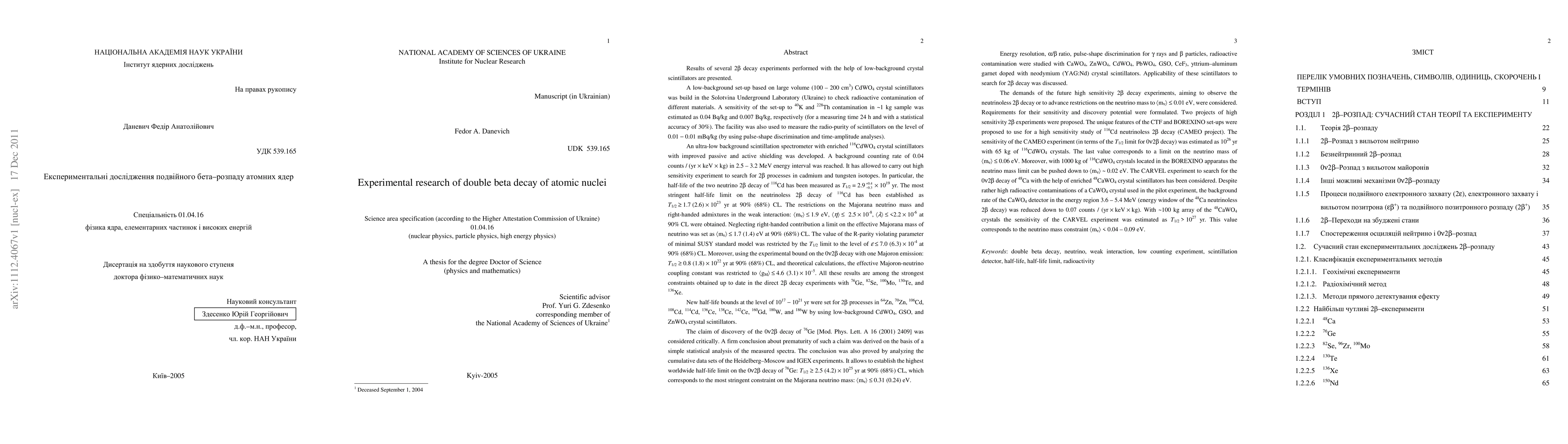 This research paper presents experimental results on double beta decay for various isotopes, including a precise half-life measurement for 116-Cd and stringent limits for neutrinoless decay. It also discusses future experiments aiming to detect neutrinoless decay and set lower limits on neutrino mass, along with the evaluation of various crystal scintillators for their potential use in these experiments.