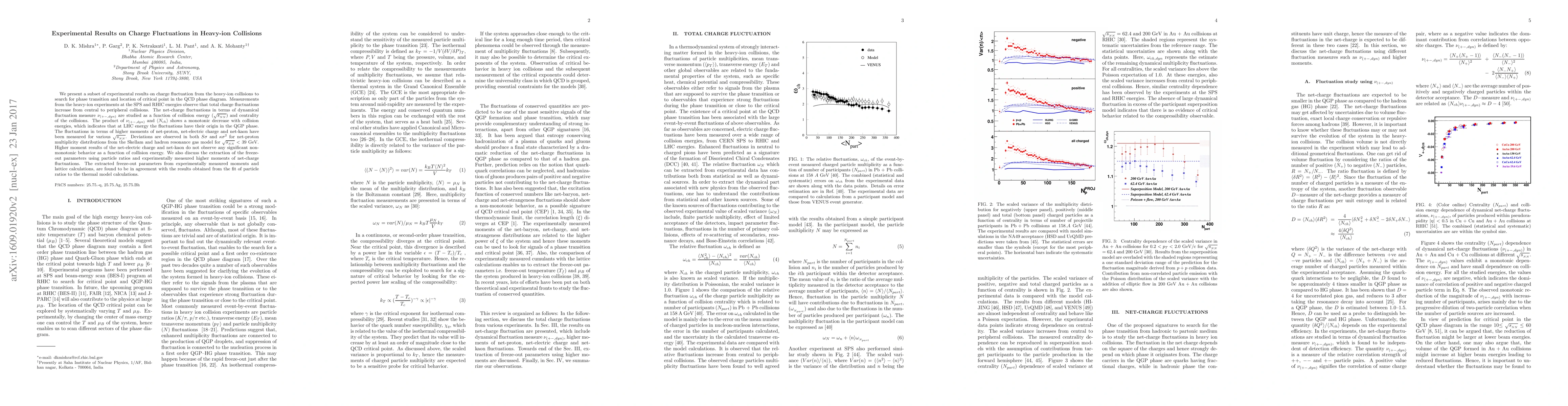 We present a subset of experimental results on charge fluctuation from the heavy-ion collisions to search for phase transition and location of critical point in the QCD phase diagram. Measurements from the heavy-ion experiments at the SPS and RHIC energies observe that total charge fluctuations increase from central to peripheral collisions. The net-charge fluctuations in terms of dynamical fluctuation measure $\nu_{(+-,dyn)}$ are studied as a function of collision energy (\sqsn) and centrality of the collisions. The product of $\nu_{(+-,dyn)}$ and $\langle N_{ch} \rangle$ shows a monotonic decrease with collision energies, which indicates that at LHC energy the fluctuations have their origin in the QGP phase. The fluctuations in terms of higher moments of net-proton, net-electric charge and net-kaon have been measured for various \sqsn. Deviations are observed in both $S\sigma$ and $\kappa\sigma^2$ for net-proton multiplicity distributions from the Skellam and hadron resonance gas model for \sqsn $<$ 39 GeV. Higher moment results of the net-electric charge and net-kaon do not observe any significant non-monotonic behavior as a function of collision energy. We also discuss the extraction of the freeze-out parameters using particle ratios and experimentally measured higher moments of net-charge fluctuations. The extracted freeze-out parameters from experimentally measured moments and lattice calculations, are found to be in agreement with the results obtained from the fit of particle ratios to the thermal model calculations.