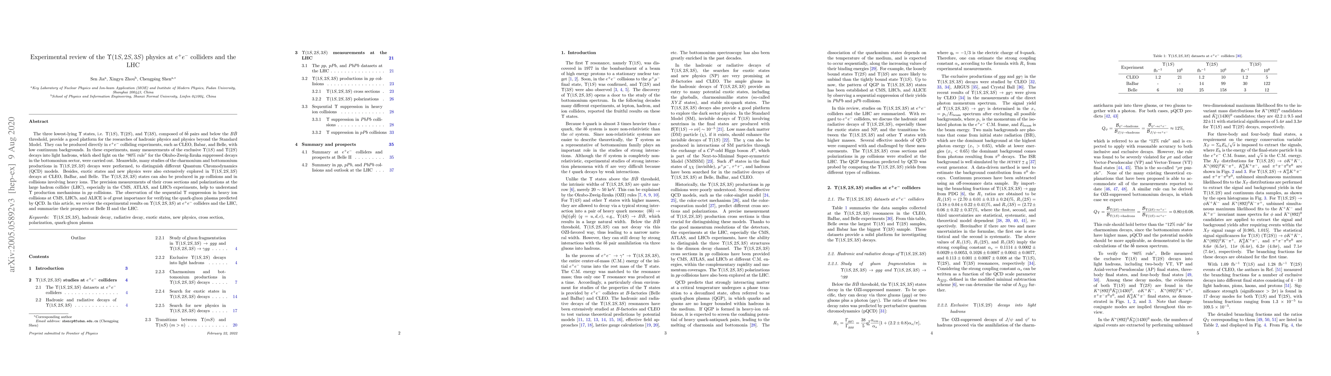 The three lowest-lying $\Upsilon$ states, i.e. $\Upsilon(1S)$, $\Upsilon(2S)$, and $\Upsilon(3S)$, composed of $b\bar b$ pairs and below the $B\bar B$ threshold, provide a good platform for the researches of hadronic physics and physics beyond the Standard Model. They can be produced directly in $e^+e^-$ colliding experiments, such as CLEO, Babar, and Belle, with low continuum backgrounds. In these experiments, many measurements of the exclusive $\Upsilon(1S)$ and $\Upsilon(2S)$ decays into light hadrons, which shed light on the "80\% rule" for the Okubo-Zweig-Iizuka suppressed decays in the bottomonium sector, were carried out. Meanwhile, many studies of the charmonium and bottomonium productions in $\Upsilon(1S,2S,3S)$ decays were performed, to distinguish different Quantum Chromodynamics (QCD) models. Besides, exotic states and new physics were also extensively explored in $\Upsilon(1S,2S,3S)$ decays at CLEO, BaBar, and Belle. The $\Upsilon(1S,2S,3S)$ states can also be produced in $pp$ collisions and in collisions involving heavy ions. The precision measurements of their cross sections and polarizations at the large hadron collider (LHC), especially in the CMS, ATLAS, and LHCb experiments, help to understand $\Upsilon$ production mechanisms in $pp$ collisions. The observation of the sequential $\Upsilon$ suppression in heavy ion collisions at CMS is of great importance for verifying the quark-gluon plasma predicted by QCD. In this article, we review the experimental results on $\Upsilon(1S,2S,3S)$ at $e^+e^-$ colliders and the LHC, and summarize their prospects at Belle II and the LHC.