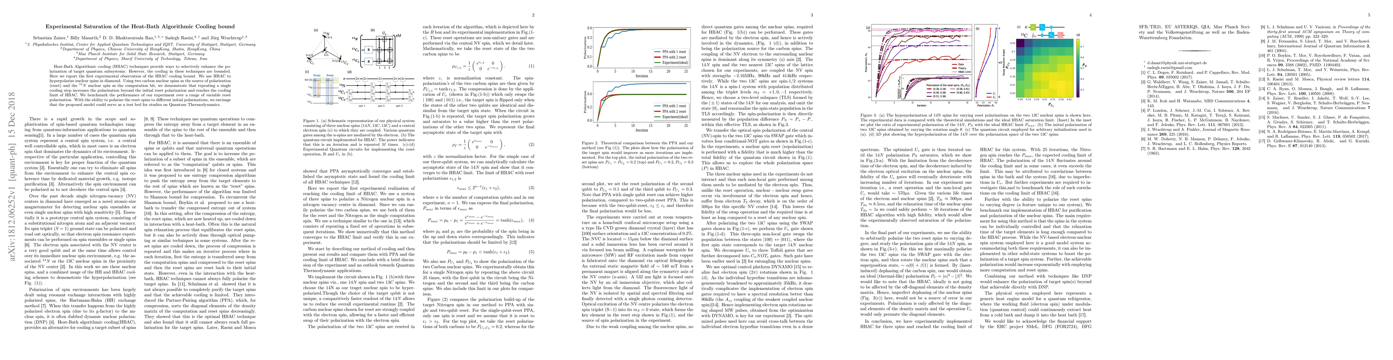 This paper reports the first experimental observation of the Heat-Bath Algorithmic Cooling (HBAC) bound, demonstrating the ability to hyperpolarize nuclear spins in diamond beyond initial reset polarization. The experiment uses carbon and nitrogen nuclear spins to show that repeated HBAC steps reach the cooling limit, providing a model for quantum thermodynamics studies.