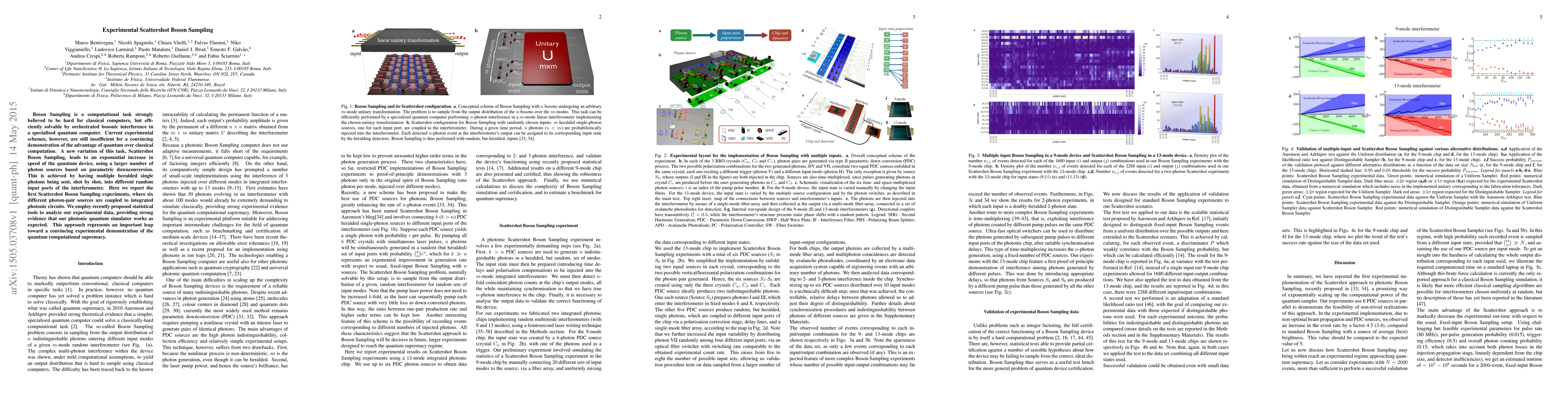 This paper reports the first experimental implementation of Scattershot Boson Sampling, a variation that exponentially boosts the speed of quantum computation using multiple photon sources. The study demonstrates the effectiveness of this method through integrated photonic circuits, providing strong evidence for the quantum computational advantage over classical systems.