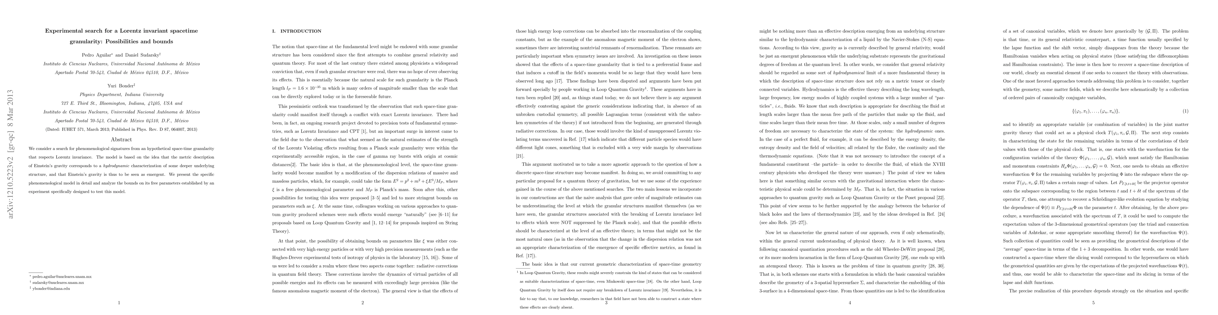 We consider a search for phenomenological signatures from an hypothetical space-time granularity that respects Lorentz invariance. The model is based on the idea that the metric description of Einstein's gravity corresponds to a hydrodynamic characterization of some deeper underlying structure, and that Einstein's gravity is thus to be seen as emergent. We present the specific phenomenological model in detail and analyze the bounds on its free parameters established by a experiment specifically designed to test this model.