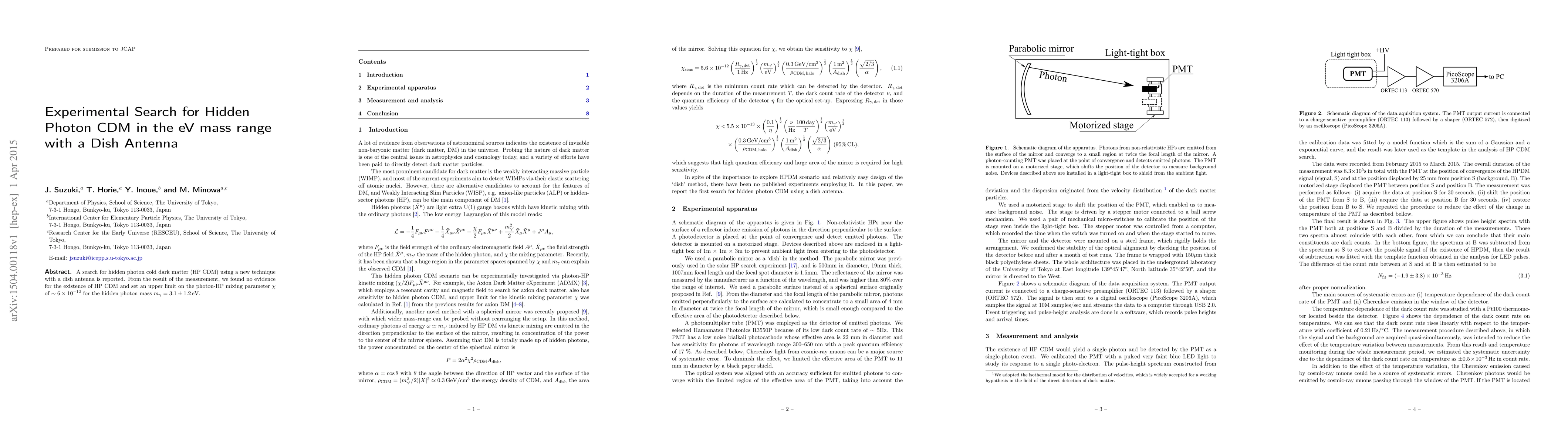 A novel technique using a dish antenna was employed to search for HPCDM in the eV-mass region.