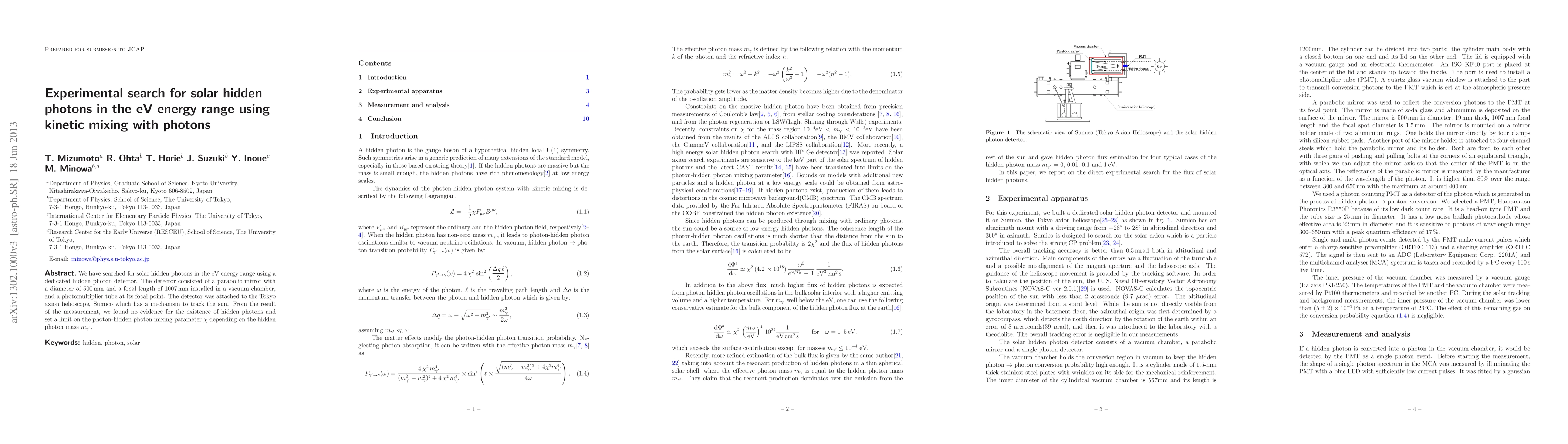 Researchers searched for solar hidden photons in the eV energy range using a specialized detector but found no evidence of their existence. They also set a limit on the mixing parameter between photons and hidden photons.