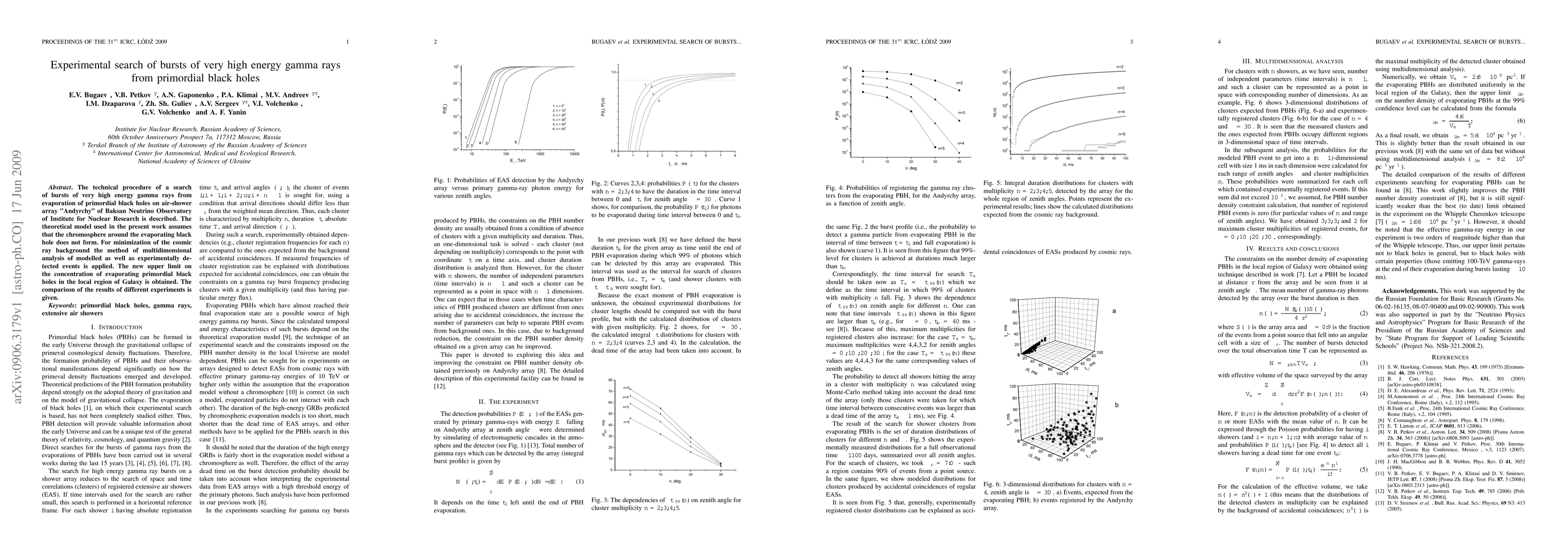 The paper presents a detailed technical procedure for searching gamma-ray bursts from primordial black hole evaporation, incorporating multidimensional analysis to reduce cosmic ray background.