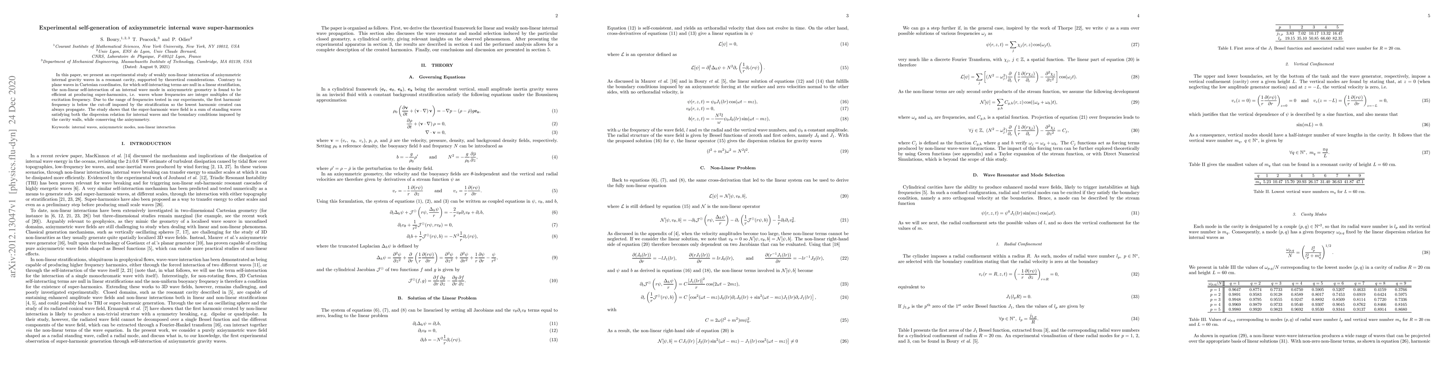 This paper experimentally investigates the weakly non-linear interaction of axisymmetric internal gravity waves in a resonant cavity, demonstrating that non-linear self-interaction efficiently generates super-harmonics. The study finds that the lowest harmonic created can always propagate, and the super-harmonic wave field consists of standing waves conserving axisymmetry.