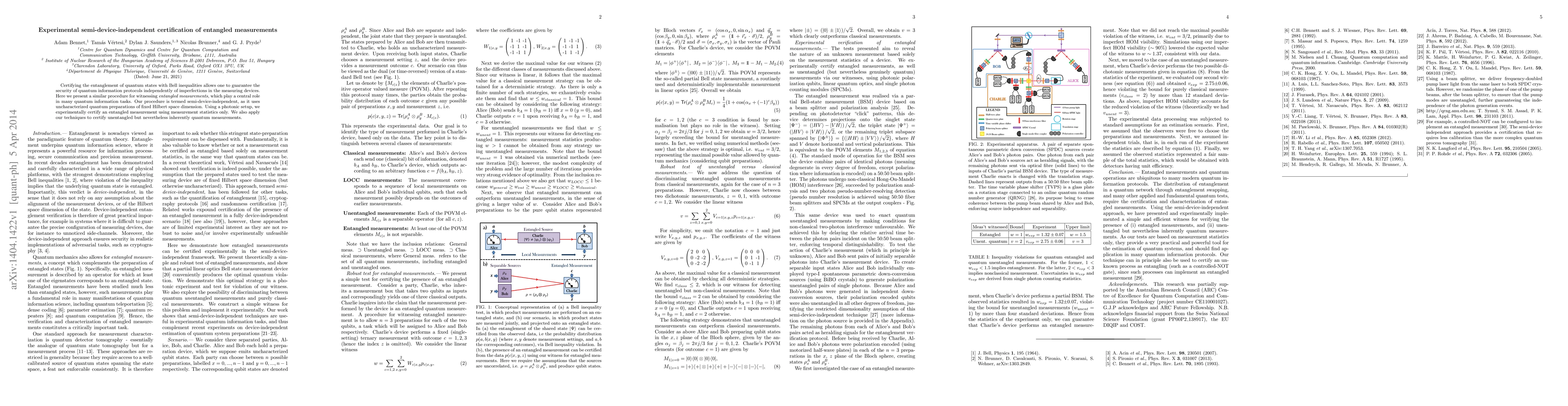 This paper presents a semi-device-independent method for certifying entangled measurements in quantum information tasks, using a photonic setup to verify these measurements based solely on measurement statistics. The approach also extends to certifying inherently quantum but unentangled measurements.