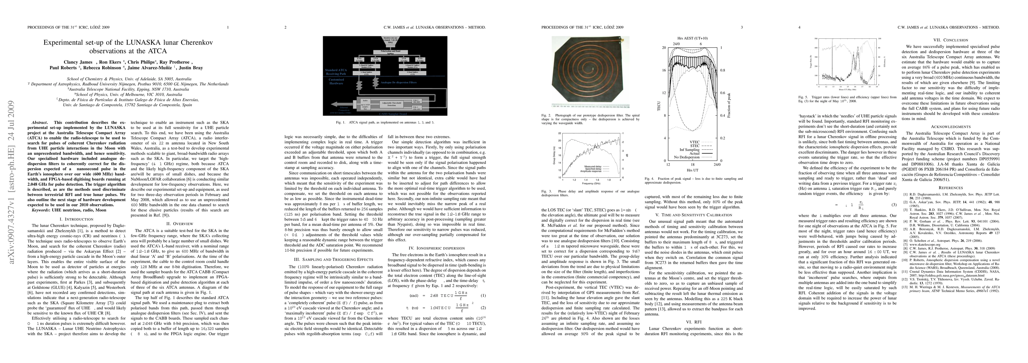 This contribution describes the experimental set-up implemented by the LUNASKA project at the Australia Telescope Compact Array (ATCA) to enable the radio-telescope to be used to search for pulses of coherent Cherenkov radiation from UHE particle interactions in the Moon with an unprecedented bandwidth, and hence sensitivity. Our specialised hardware included analogue de-dispersion filters to coherently correct for the dispersion expected of a ~nanosecond pulse in the Earth's ionosphere over our wide (600 MHz) bandwidth, and FPGA-based digitising boards running at 2.048 GHz for pulse detection. The trigger algorithm is described, as are the methods used discriminate between terrestrial RFI and true lunar pulses. We also outline the next stage of hardware development expected to be used in our 2010 observations.