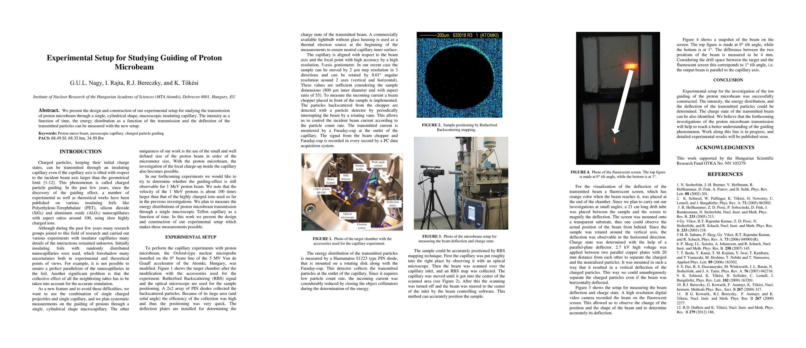 A new experimental setup has been designed to study how protons are guided through a single, cylindrical capillary, allowing for the measurement of particle intensity, energy distribution, and deflection over time.