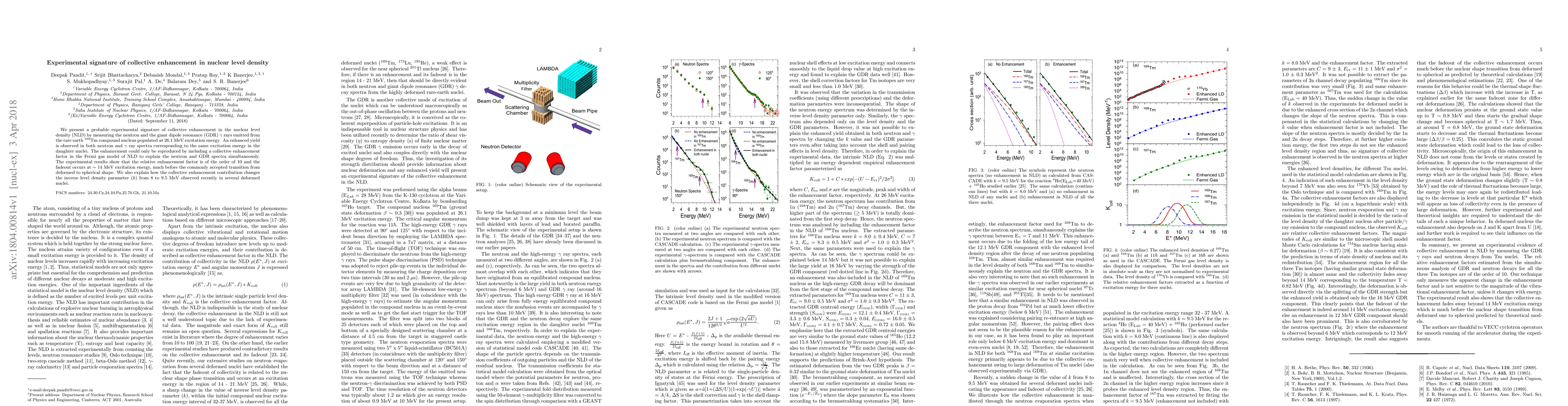 This paper reports an experimental observation of collective enhancement in nuclear level density through neutron and gamma-ray emissions from $^{169}$Tm at 26.1 MeV excitation energy, showing an enhancement factor of around 10. The collective enhancement modifies the inverse level density parameter from 8 to 9.5 MeV.