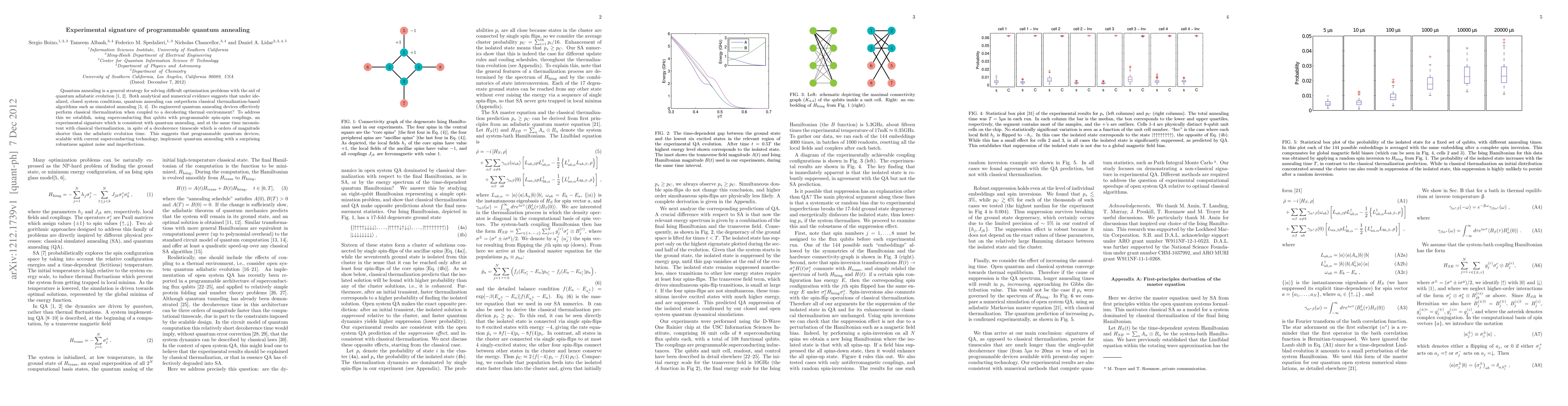 Quantum annealing is a general strategy for solving difficult optimization problems with the aid of quantum adiabatic evolution. Both analytical and numerical evidence suggests that under idealized, closed system conditions, quantum annealing can outperform classical thermalization-based algorithms such as simulated annealing. Do engineered quantum annealing devices effectively perform classical thermalization when coupled to a decohering thermal environment? To address this we establish, using superconducting flux qubits with programmable spin-spin couplings, an experimental signature which is consistent with quantum annealing, and at the same time inconsistent with classical thermalization, in spite of a decoherence timescale which is orders of magnitude shorter than the adiabatic evolution time. This suggests that programmable quantum devices, scalable with current superconducting technology, implement quantum annealing with a surprising robustness against noise and imperfections.