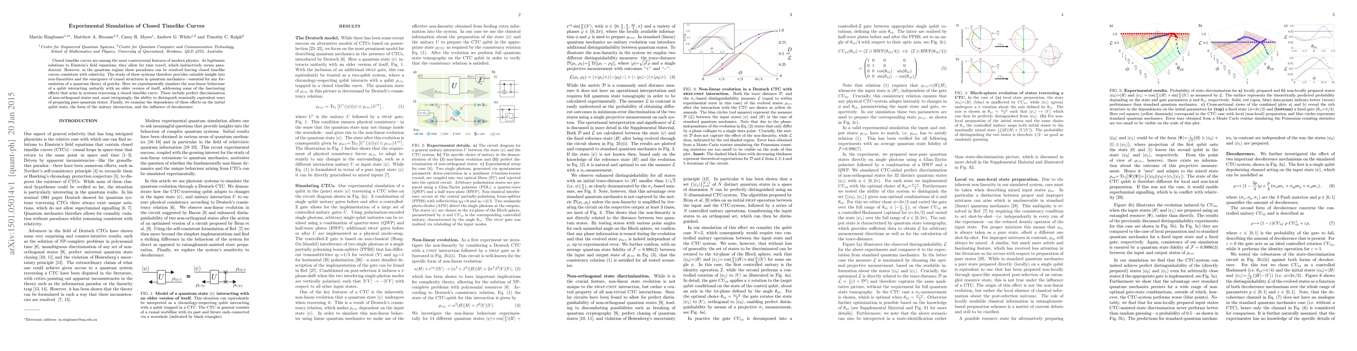 The paper presents an experimental simulation of a qubit's non-linear evolution in a CTC, demonstrating enhanced distinguishability of quantum states and perfect discrimination of non-orthogonal states.