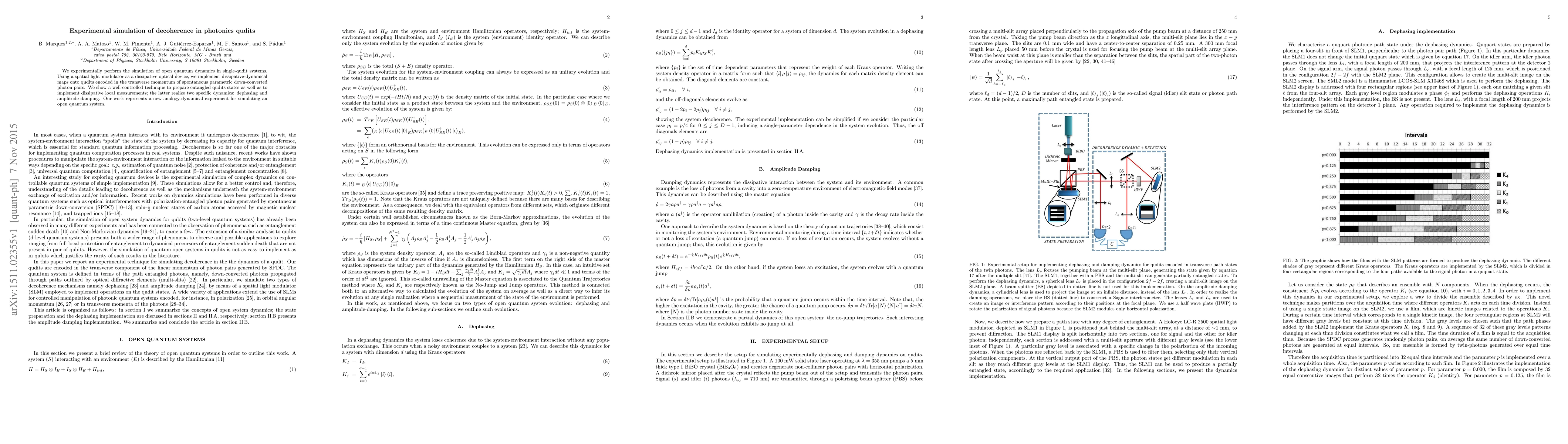 This paper experimentally simulates open quantum dynamics in photonic qudits using a spatial light modulator to implement dissipative-dynamical maps, demonstrating controlled preparation of entangled qudit states and specific dissipative local measurements, including dephasing and amplitude damping. The study provides a novel analogy-dynamical approach for simulating open quantum systems.