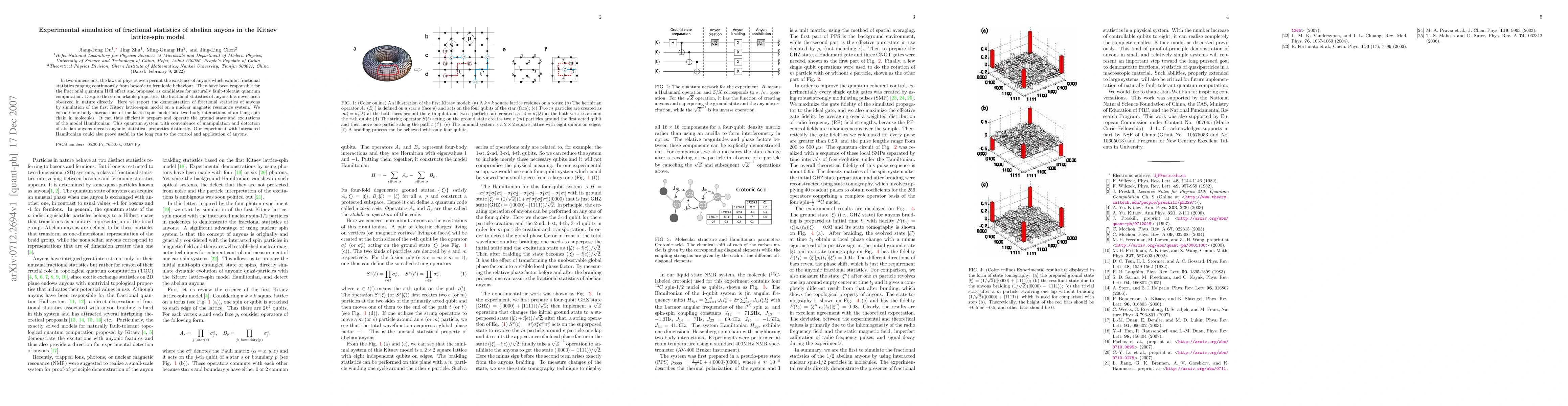 This research demonstrates the simulation of fractional statistics of abelian anyons in the Kitaev lattice-spin model using a nuclear magnetic resonance system, successfully encoding four-body interactions into two-body interactions. The experiment reveals distinct anyonic statistical properties, providing a useful platform for future control and application of anyons.