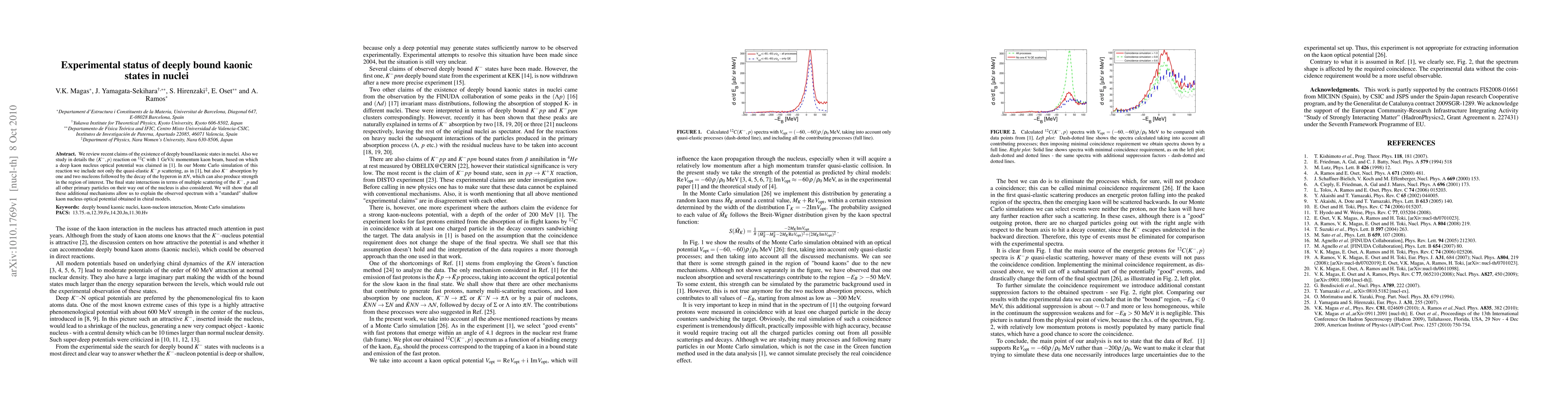 We review recent claims of the existence of deeply bound kaonic states in nuclei. Also we study in details the (K-,p) reaction on C12 with 1 GeV/c momentum kaon beam, based on which a deep kaon nucleus optical potential was claimed in [1]. In our Monte Carlo simulation of this reaction we include not only the quasi-elastic K- p scattering, as in [1], but also K- absorption by one and two nucleons followed by the decay of the hyperon in pi N, which can also produce strength in the region of interest. The final state interactions in terms of multiple scattering of the K-, p and all other primary particles on their way out of the nucleus is also considered. We will show that all these additional mechanisms allow us to explain the observed spectrum with a "standard" shallow kaon nucleus optical potential obtained in chiral models. [1] T. Kishimoto et al., Prog. Theor. Phys. 118, 181 (2007).