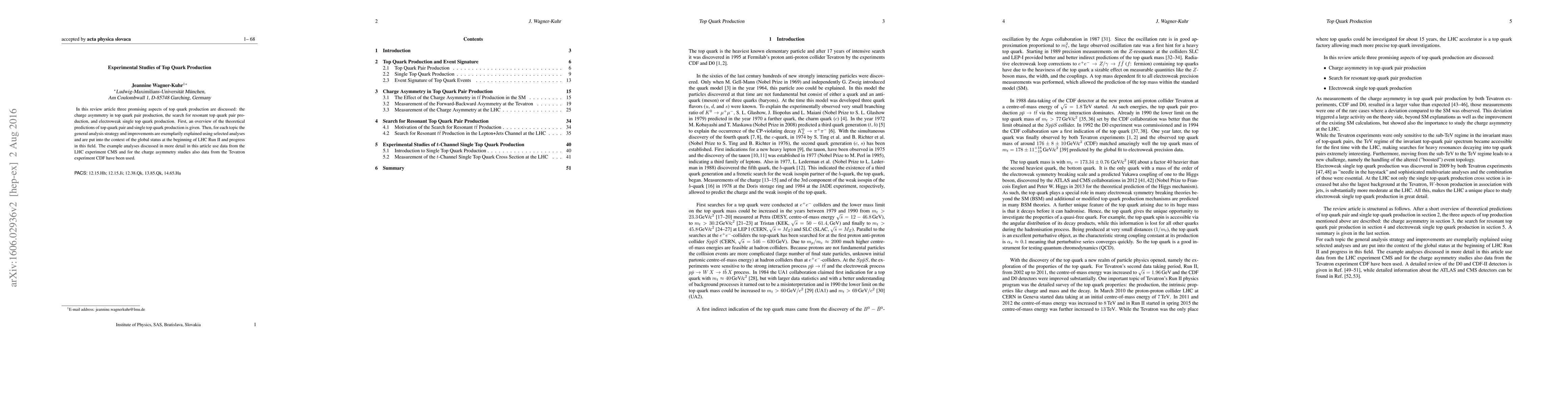 This review article explores three facets of top quark production: charge asymmetry in top quark pairs, resonant top quark pair production, and electroweak single top quark production. It provides theoretical predictions and analysis strategies, contextualizing recent advancements and using data from the CMS and CDF experiments.