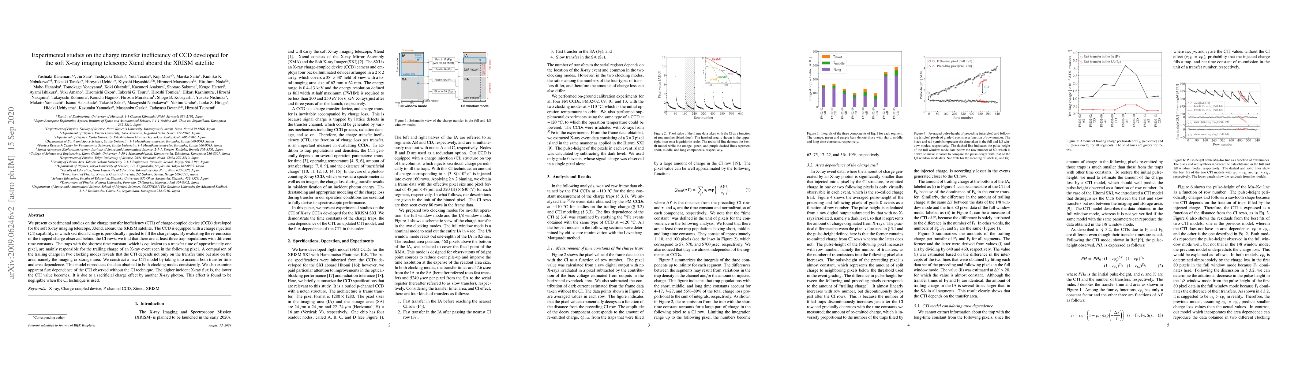 This paper investigates the charge transfer inefficiency (CTI) of a CCD developed for the XRISM satellite's Xtend telescope, identifying three trap populations with varying time constants. A new CTI model that accounts for both transfer time and area dependence is proposed, which accurately reproduces experimental data. The study also finds that higher X-ray fluxes reduce CTI, though this effect is mitigated by charge injection techniques.