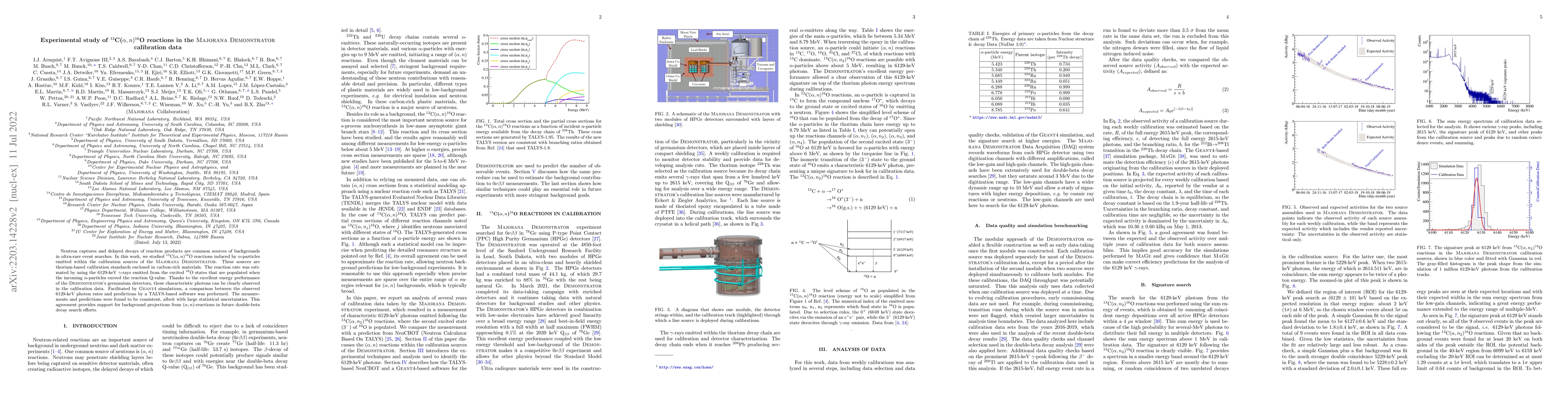 This study investigates the $^{13}$C($\alpha,n)^{16}$O reactions in the Majorana Demonstrator calibration data, estimating reaction rates via 6129-keV $\gamma$-rays. The results, supported by Geant4 simulations, show consistency between observed and predicted photon rates, aiding future double-beta decay search background projections.