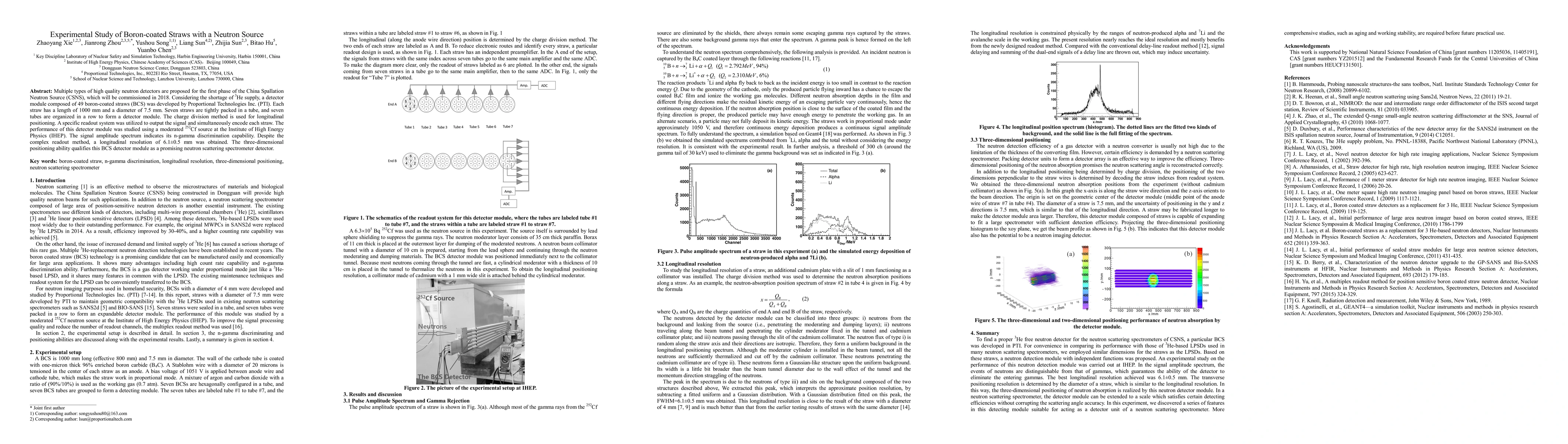 This study developed a boron-coated straw detector module composed of 49 straws to address the 3He supply shortage for the China Spallation Neutron Source. The detector module demonstrated promising n-gamma discrimination and a longitudinal resolution of 6.1-0.5 mm, qualifying it for neutron scattering spectrometry.