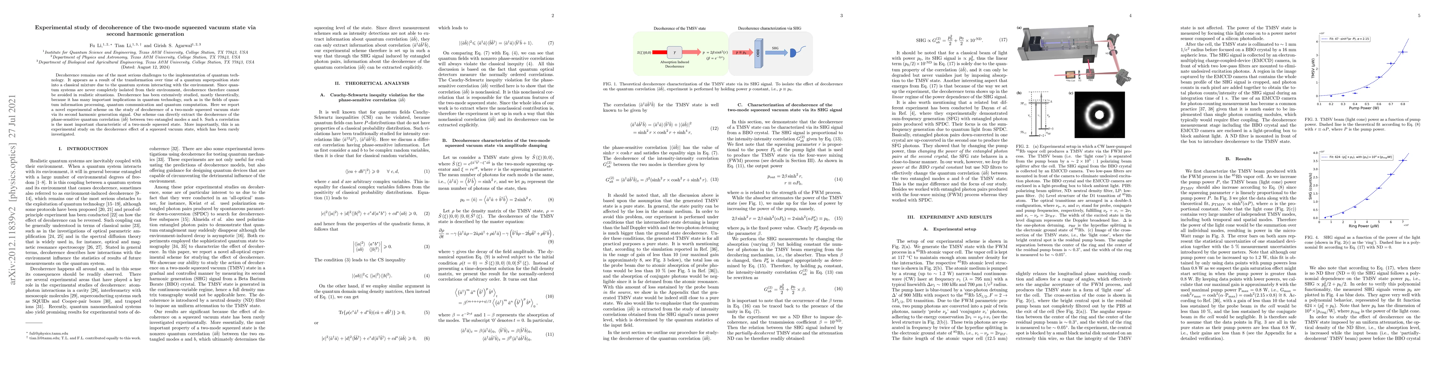 This research presents an experimental method to study decoherence in a two-mode squeezed vacuum state using second harmonic generation. The study directly extracts decoherence of phase-sensitive quantum correlations, a crucial feature of squeezed states, providing valuable insights into decoherence effects in quantum systems.
