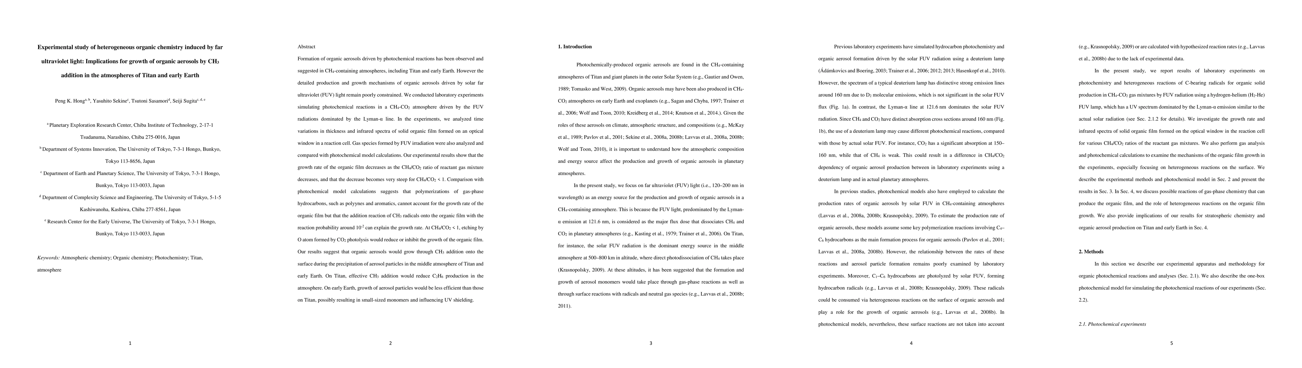This study explores the formation of organic aerosols in CH4-CO2 atmospheres under far ultraviolet (FUV) light, revealing that CH3 radical addition onto organic films drives aerosol growth. The experiments suggest that on Titan, this process reduces C2H6 production, while on early Earth, less efficient growth may lead to smaller aerosols affecting UV shielding.