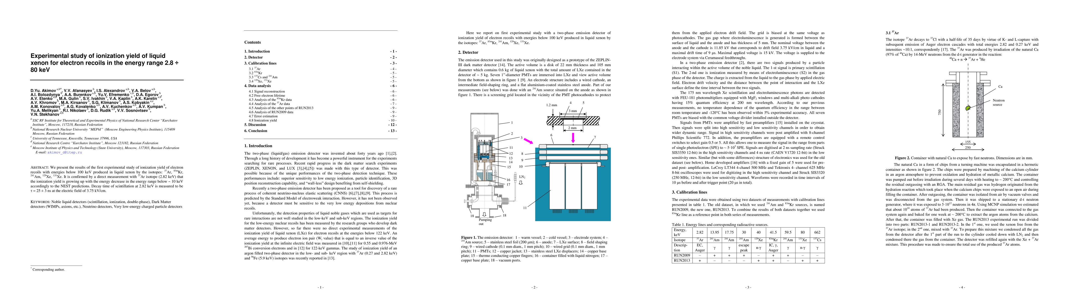 We present the results of the first experimental study of ionization yield of electron recoils with energies below 100 keV produced in liquid xenon by the isotopes: 37Ar, 83mKr, 241Am, 129Xe, 131Xe. It is confirmed by a direct measurement with 37Ar isotope (2.82 keV) that the ionization yield is growing up with the energy decrease in the energy range below ~ 10 keV accordingly to the NEST predictions. Decay time of scintillation at 2.82 keV is measured to be 25 +/- 3 ns at the electric field of 3.75 kV/cm.