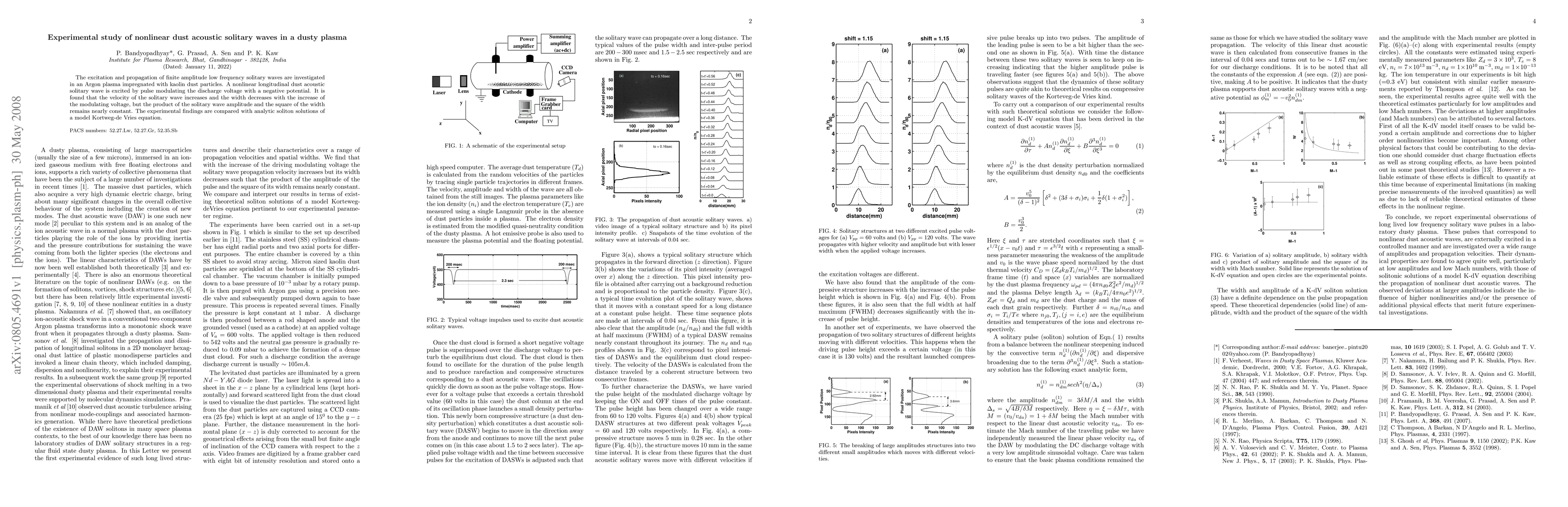 This paper investigates the excitation and propagation of nonlinear dust acoustic solitary waves in an Argon plasma containing kaolin dust particles. The study finds that increasing the modulating voltage enhances solitary wave velocity and narrows its width, while maintaining a constant product of amplitude and width squared.