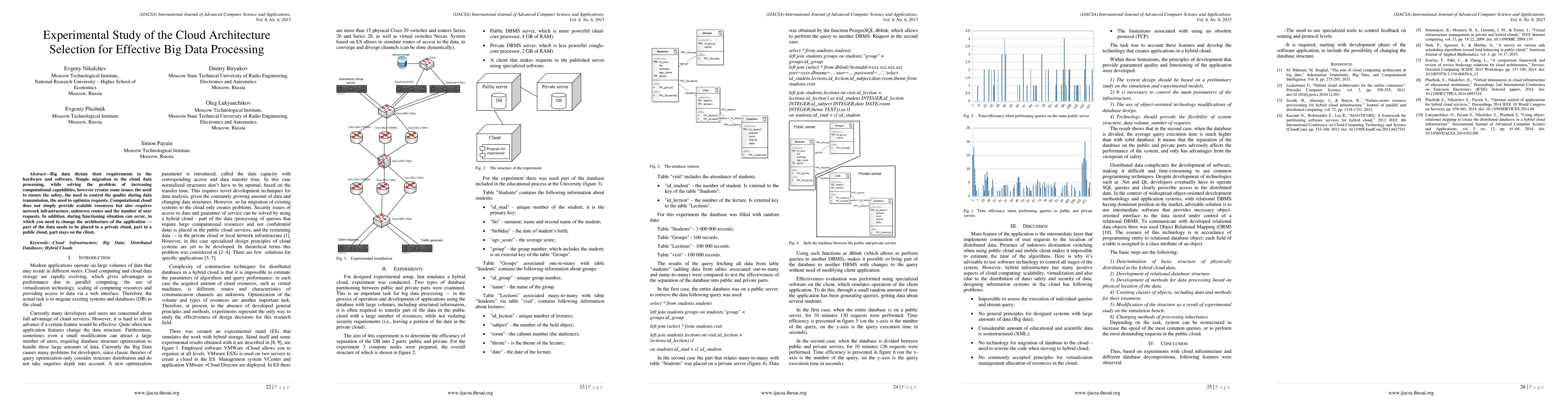 Big data dictate their requirements to the hardware and software. Simple migration to the cloud data processing, while solving the problem of increasing computational capabilities, however creates some issues: the need to ensure the safety, the need to control the quality during data transmission, the need to optimize requests. Computational cloud does not simply provide scalable resources but also requires network infrastructure, unknown routes and the number of user requests. In addition, during functioning situation can occur, in which you need to change the architecture of the application - part of the data needs to be placed in a private cloud, part in a public cloud, part stays on the client.