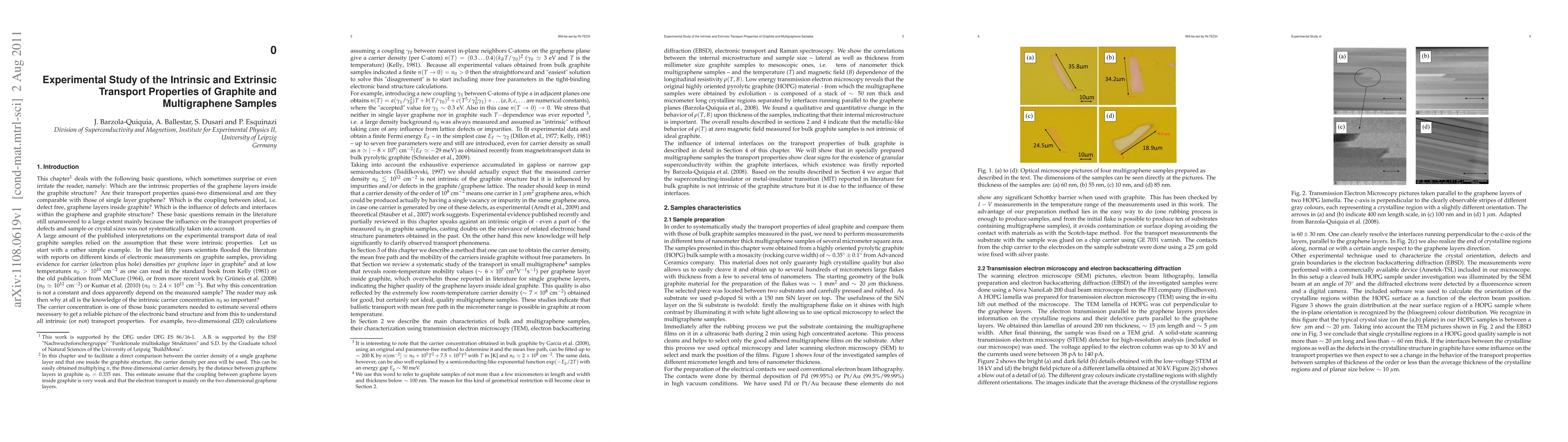 This study investigates the intrinsic and extrinsic transport properties of graphite and multigraphene, highlighting the impact of defects and interfaces. It reveals ballistic transport in mesoscopic graphite samples and identifies granular superconductivity within graphite interfaces, suggesting that reported metal-insulator transitions are interface-driven rather than intrinsic.