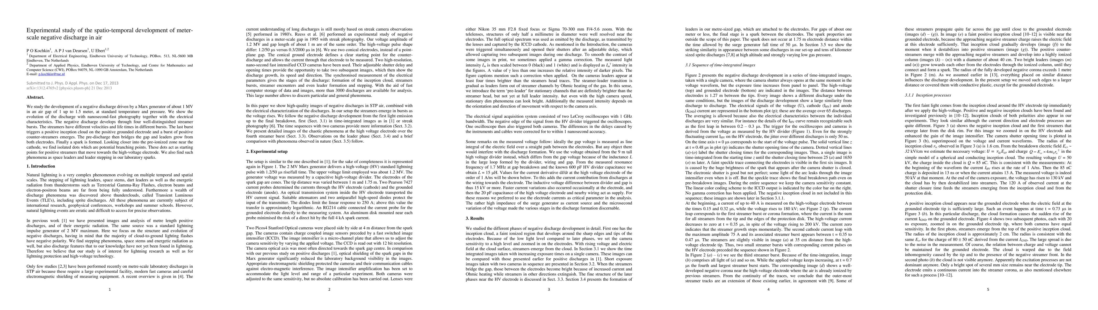 Researchers studied a 1 MV Marx generator discharge in air, capturing its development through four distinct streamer bursts, which ultimately led to the formation of a spark. The study provides insight into the pre-ionized zone near the cathode and potential branching points for positive streamers.