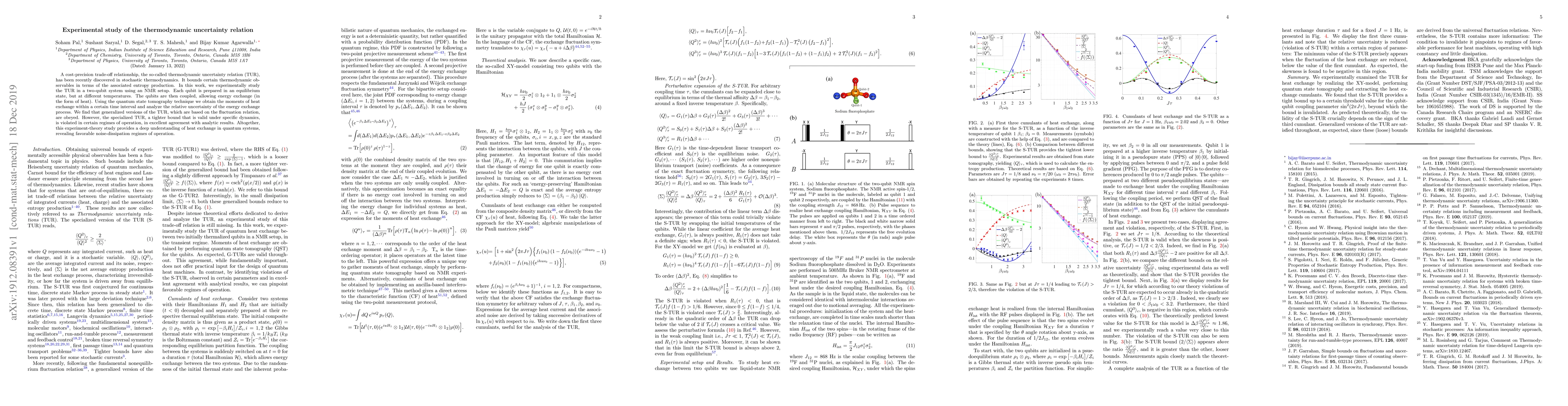 Researchers experimentally study thermodynamic uncertainty relation in a 2-qubit system, finding that generalized versions of the TUR are obeyed but specialized bounds are violated, revealing favorable noise-dissipation regimes.