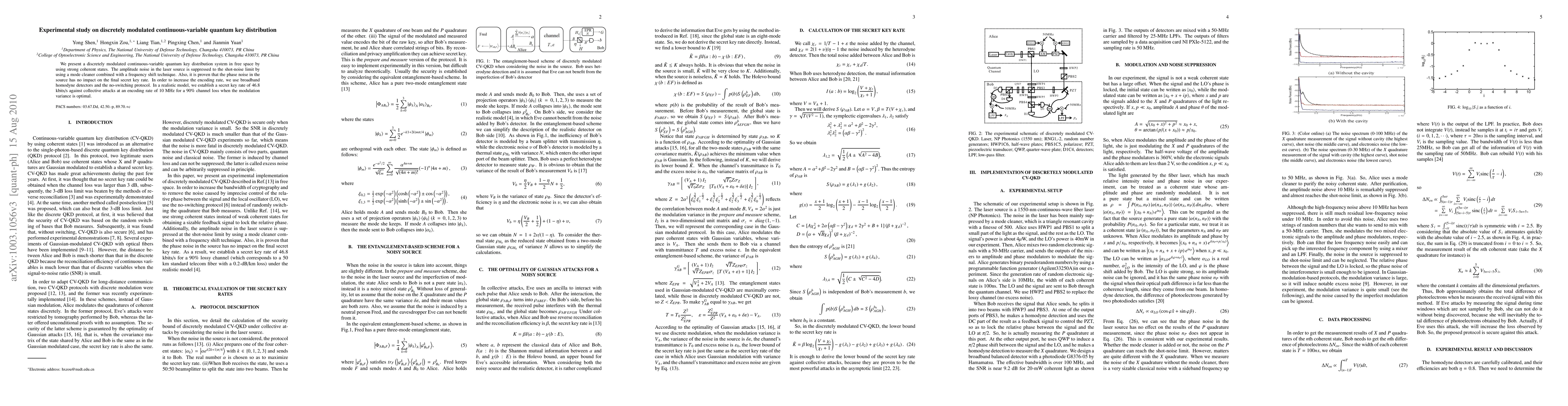 This paper details an experimental setup for discretely modulated continuous-variable quantum key distribution in free space, achieving a secret key rate of 46.8 kbits/s by suppressing amplitude noise and employing broadband homodyne detectors, while proving phase noise has no impact on the key rate.