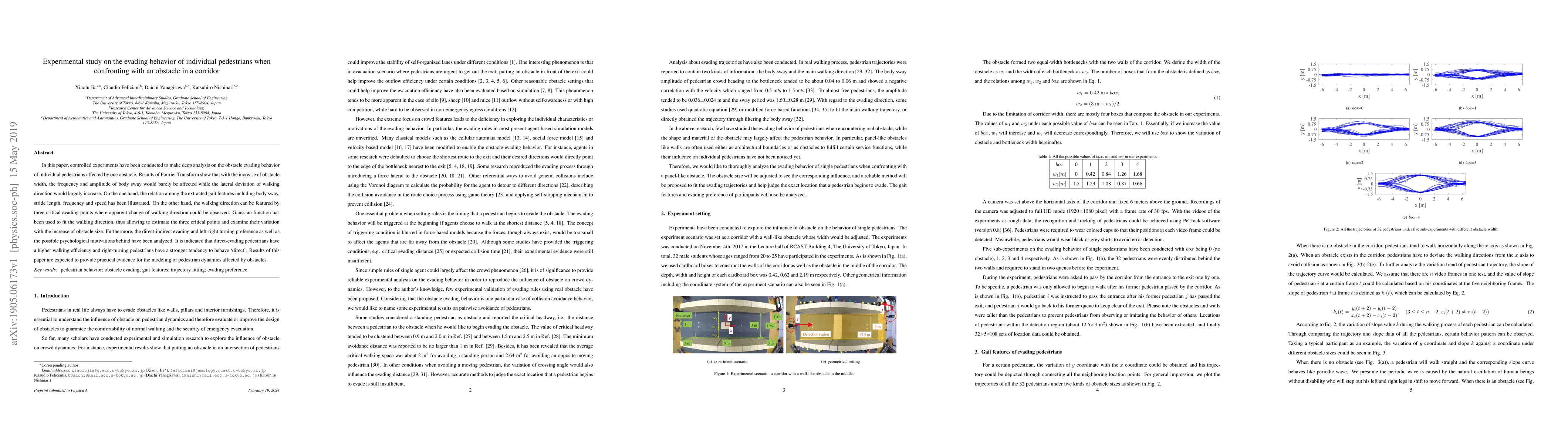 In this paper, controlled experiments have been conducted to make deep analysis on the obstacle evading behavior of individual pedestrians affected by one obstacle. Results of Fourier Transform show that with the increase of obstacle width, the frequency and amplitude of body sway would barely be affected while the lateral deviation of walking direction would largely increase. On the one hand, the relation among the extracted gait features including body sway, stride length, frequency and speed has been illustrated. On the other hand, the walking direction can be featured by three critical evading points where apparent change of walking direction could be observed. Gaussian function has been used to fit the walking direction, thus allowing to estimate the three critical points and examine their variation with the increase of obstacle size. Furthermore, the direct-indirect evading and left-right turning preference as well as the possible psychological motivations behind have been analyzed. It is indicated that direct-evading pedestrians have a higher walking efficiency and right-turning pedestrians have a stronger tendency to behave `direct'. Results of this paper are expected to provide practical evidence for the modeling of pedestrian dynamics affected by obstacles.