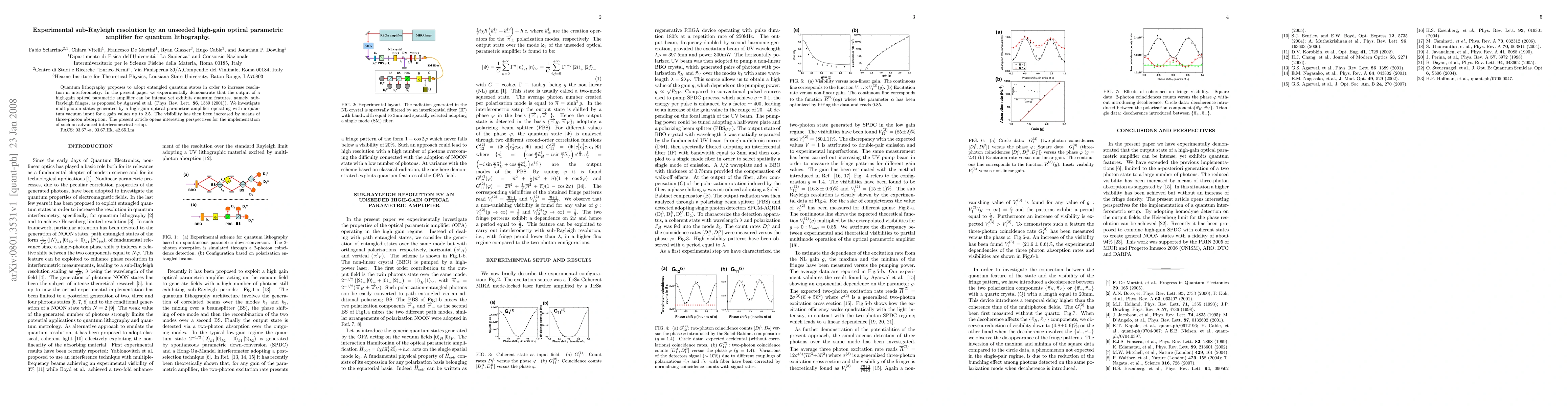 This paper demonstrates the use of a high-gain optical parametric amplifier to produce multiphoton states with sub-Rayleigh resolution, a key feature for quantum lithography. The study shows increased fringe visibility through three-photon absorption, suggesting potential for advanced interferometric applications.
