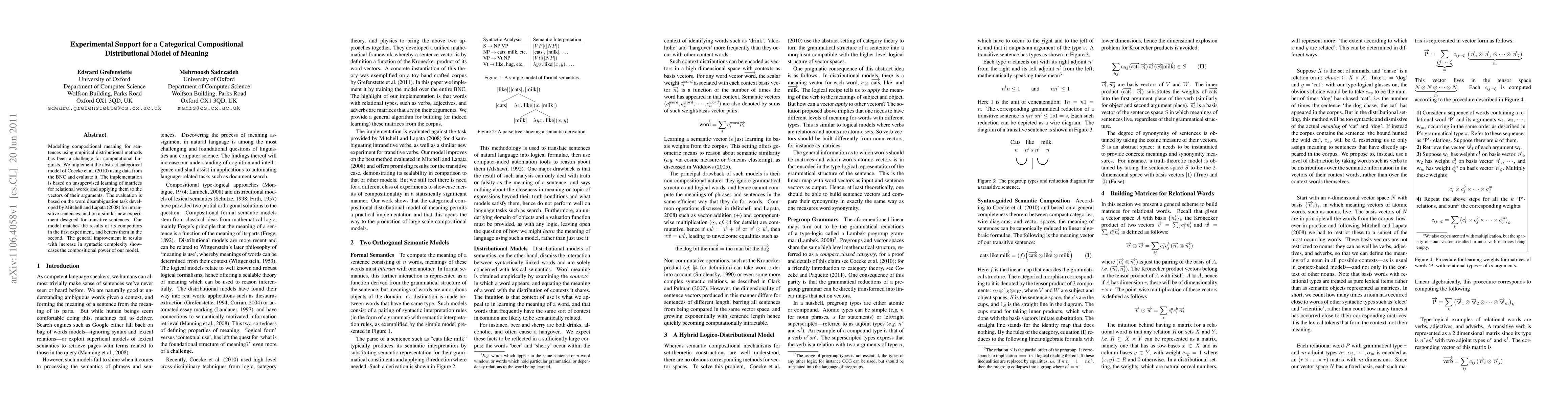 This paper implements and evaluates a categorical compositional distributional model for sentence meaning using unsupervised learning on BNC data. The model outperforms competitors in transitive sentence experiments, demonstrating improved compositional power with syntactic complexity.