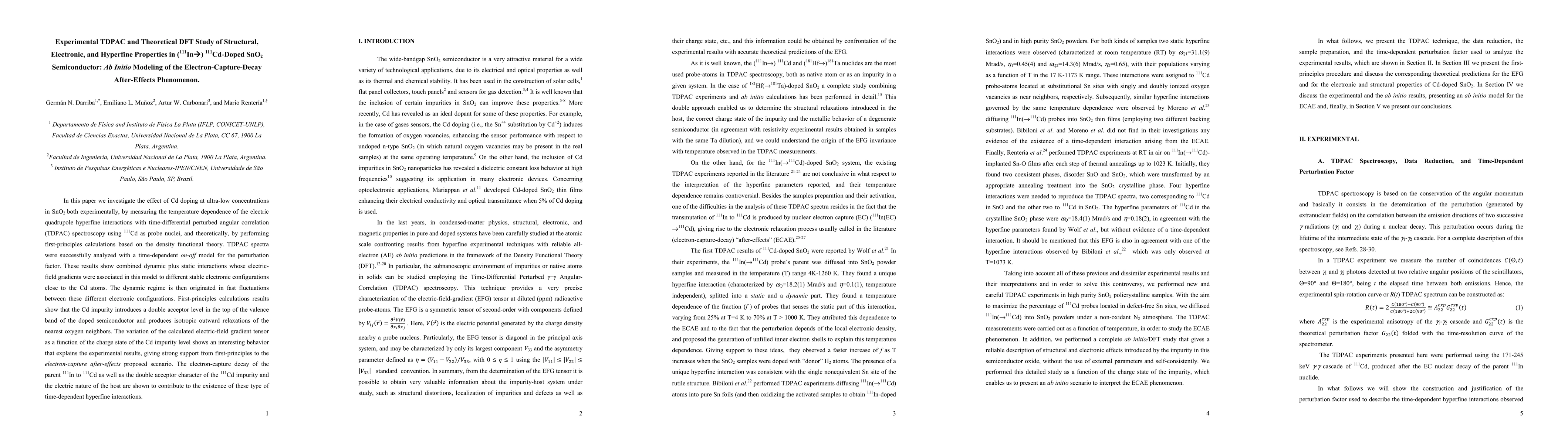 In this paper we investigate the effect of Cd doping at ultra-low concentrations in SnO$_2$ both experimentally, by measuring the temperature dependence of the electric quadrupole hyperfine interactions with time-differential perturbed angular correlation (TDPAC) spectroscopy using $^{111}$Cd as probe nuclei, and theoretically, by performing first-principles calculations based on the density functional theory. TDPAC spectra were successfully analyzed with a time-dependent on-off model for the perturbation factor. These results show combined dynamic plus static interactions whose electric-field gradients were associated in this model to different stable electronic configurations close to the Cd atoms. The dynamic regime is then originated in fast fluctuations between these different electronic configurations. First-principles calculations results show that the Cd impurity introduces a double acceptor level in the top of the valence band of the doped semiconductor and produces isotropic outward relaxations of the nearest oxygen neighbors. The variation of the calculated electric-field gradient tensor as a function of the charge state of the Cd impurity level shows an interesting behavior that explains the experimental results, giving strong support from first-principles to the electron-capture after-effects proposed scenario. The electron-capture decay of the parent $^{111}$In to $^{111}$Cd as well as the double acceptor character of the $^{111}$Cd impurity and the electric nature of the host are shown to contribute to the existence of these type of time-dependent hyperfine interactions.