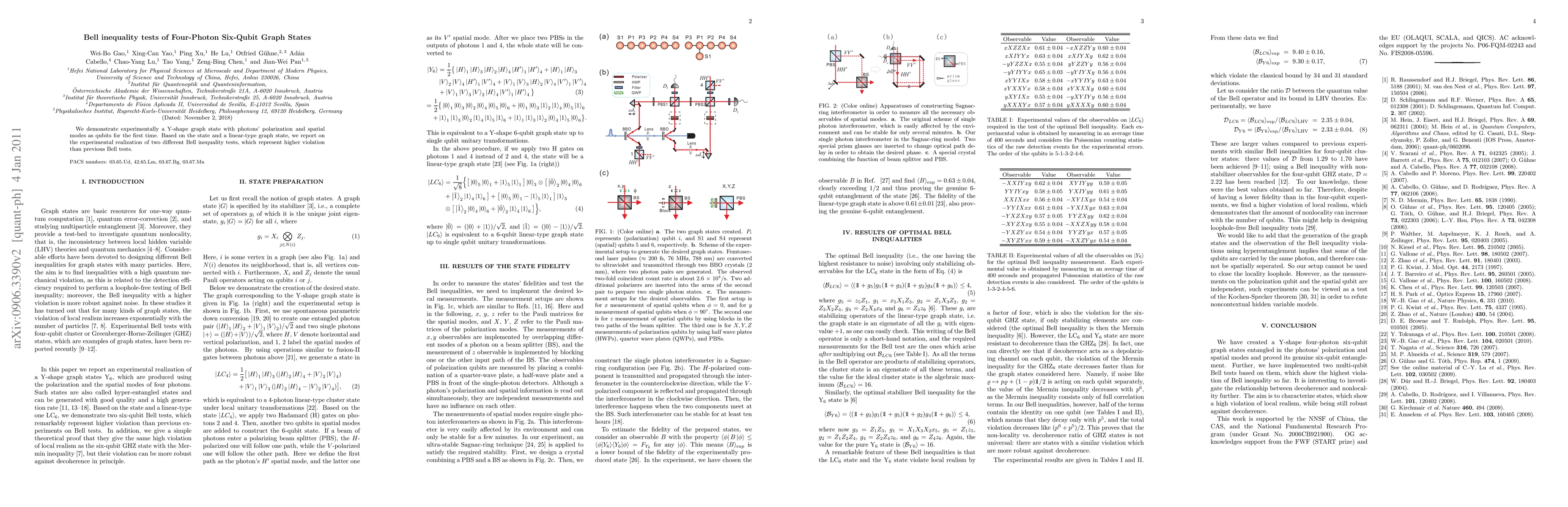 This paper details an experimental test of Bell inequalities using six-qubit graph states, demonstrating optimal violations and maximum noise resistance in both linear-type and Y-shape configurations. The results provide strong evidence for quantum entanglement and non-locality.