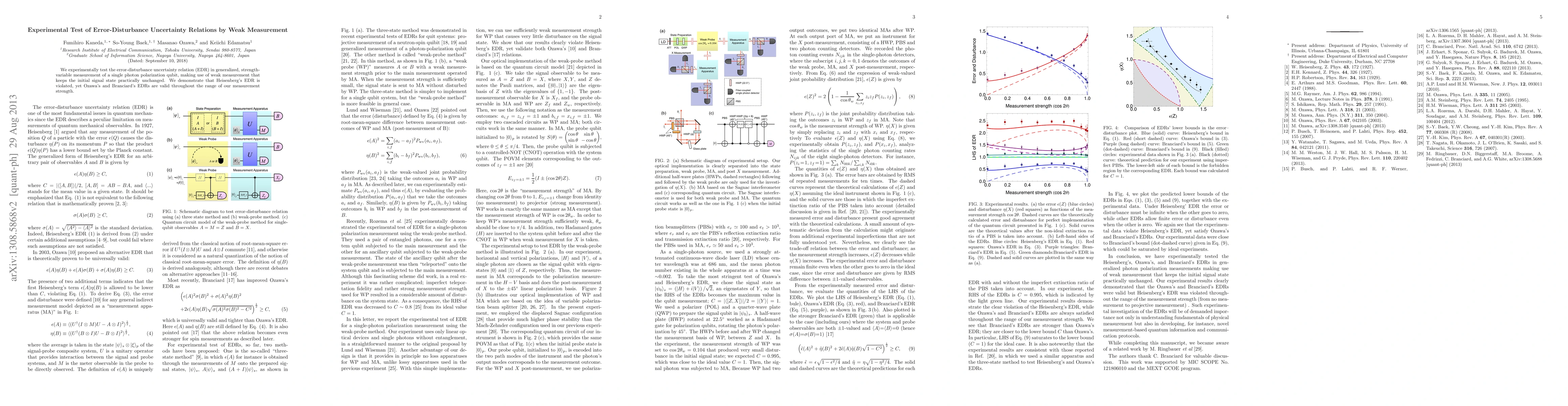 This paper experimentally tests error-disturbance uncertainty relations (EDRs) using weak measurements on a single photon polarization qubit, showing violation of Heisenberg's EDR while confirming Ozawa's and Branciard's EDRs across varying measurement strengths.
