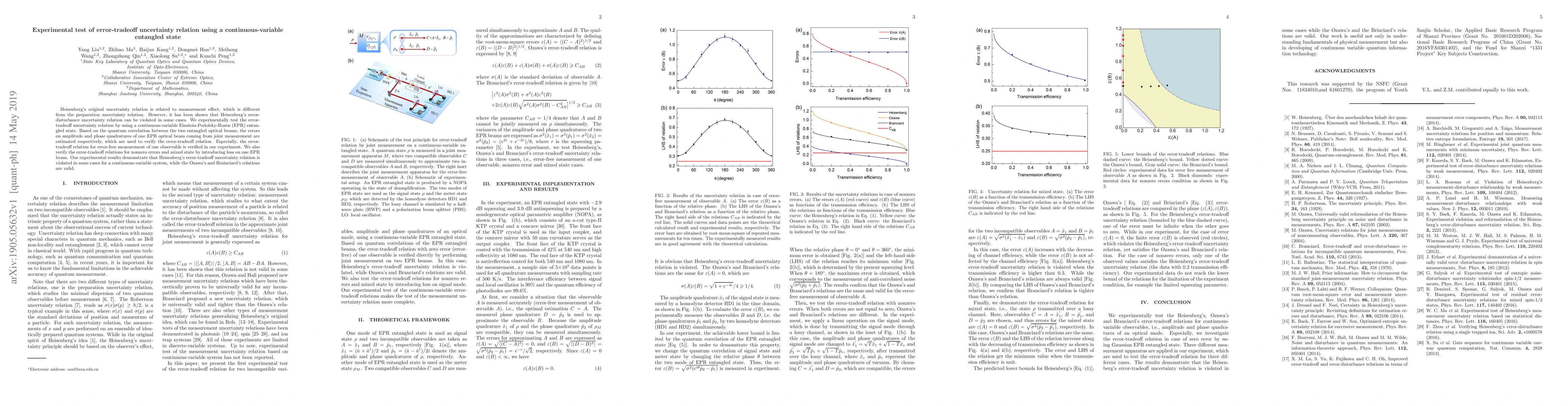 This paper experimentally tests Heisenberg's error-tradeoff uncertainty relation using continuous-variable entangled states, showing that the relation can be violated, while Ozawa's and Branciard's relations remain valid, especially under nonzero errors and mixed states.