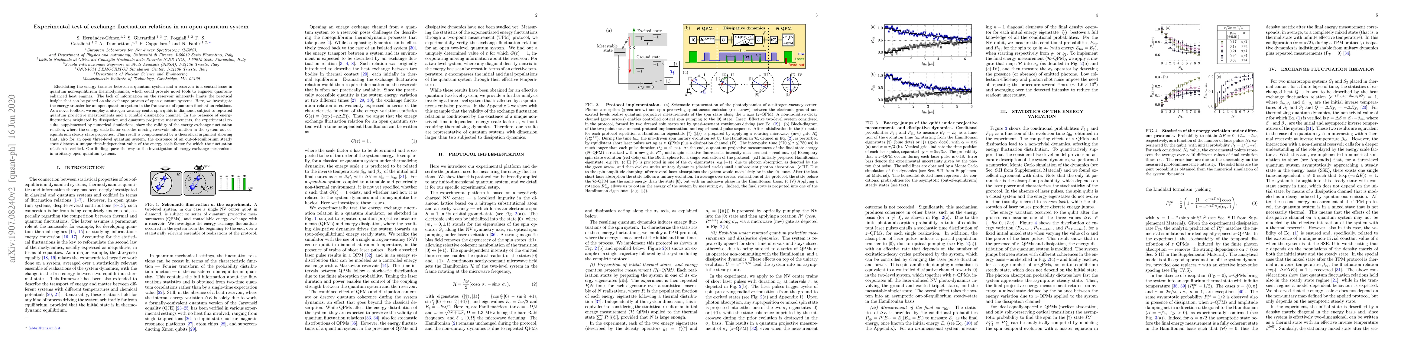 This paper experimentally tests energy transfer in an open quantum system using a nitrogen-vacancy center in diamond, demonstrating the validity of energy exchange fluctuation relations. The results show that the energy scale factor encodes missing reservoir information, providing insights into quantum non-equilibrium thermodynamics.