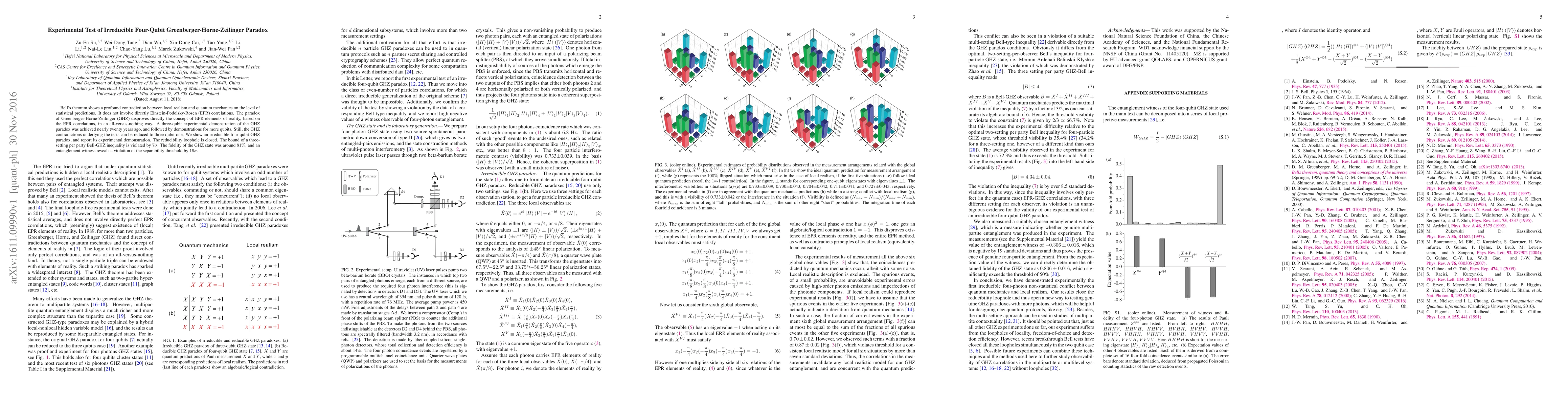 Bell's theorem shows a profound contradiction between local realism and quantum mechanics on the level of statistical predictions. It does not involve directly Einstein-Podolsky-Rosen (EPR) correlations. The paradox of Greenberger-Horne-Zeilinger (GHZ) disproves directly the concept of EPR elements of reality, based on the EPR correlations, in an all-versus-nothing way. A three-qubit experimental demonstration of the GHZ paradox was achieved nearly twenty years ago, and followed by demonstrations for more qubits. Still, the GHZ contradictions underlying the tests can be reduced to three-qubit one. We show an irreducible four-qubit GHZ paradox, and report its experimental demonstration. The reducibility loophole is closed. The bound of a three-setting per party Bell-GHZ inequality is violated by $7\sigma$. The fidelity of the GHZ state was around $81\%$, and an entanglement witness reveals a violation of the separability threshold by $19\sigma$.