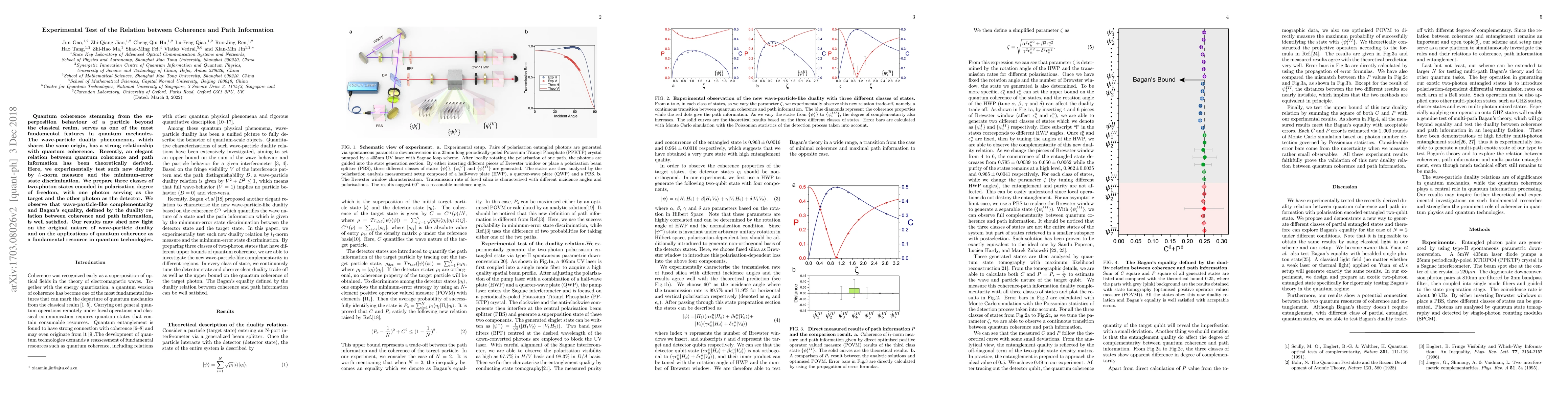 This paper experimentally tests the theoretical relation between quantum coherence and path information using two-photon states encoded in polarization. The results confirm wave-particle complementarity and Bagan's equality, providing insights into the fundamental nature of wave-particle duality and the potential applications of quantum coherence in quantum technologies.