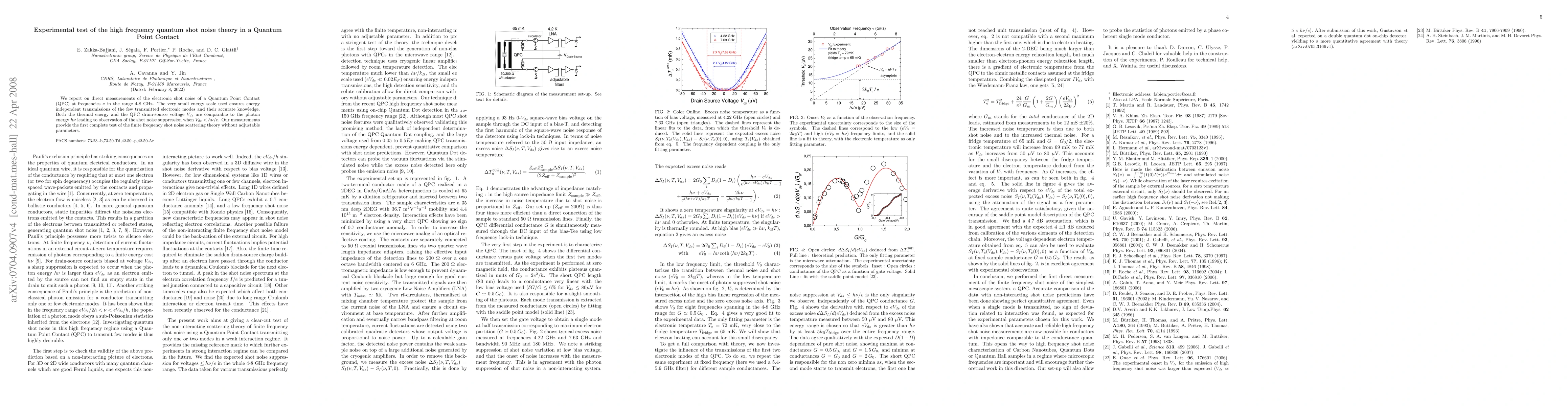 This paper reports direct measurements of high-frequency electronic shot noise in a quantum point contact at frequencies 4-8 GHz, confirming the suppression of shot noise when the drain-source voltage is below the photon energy. The study provides a complete test of finite frequency shot noise scattering theory without adjustable parameters.