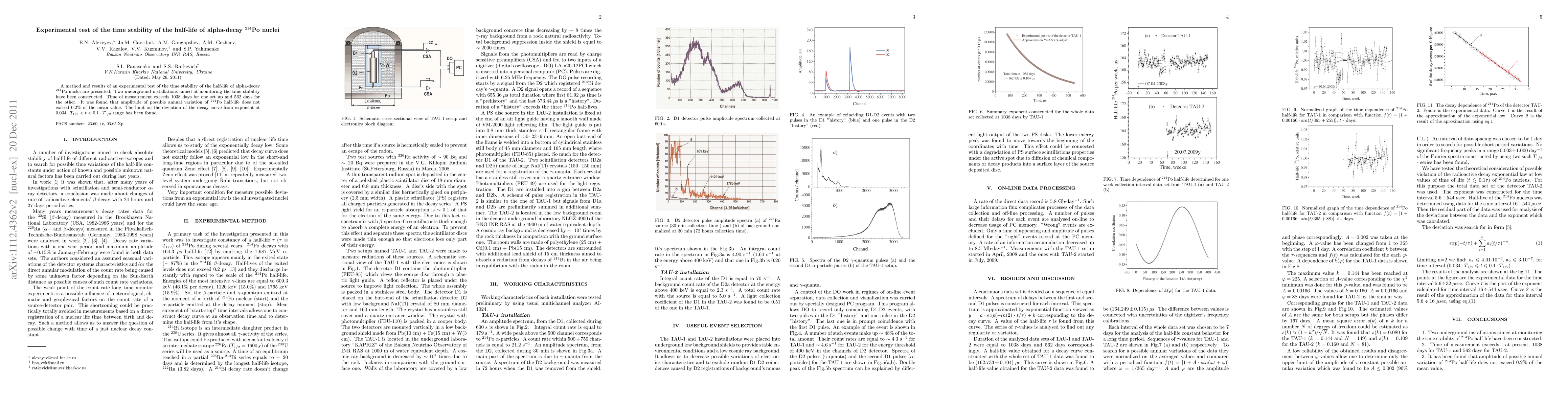 Researchers tested the time stability of alpha-decay Po-214 nuclei over 1 year, finding minimal annual variation in half-life (<0.2%) and a decay curve that adheres to an exponential model within a specific time range.