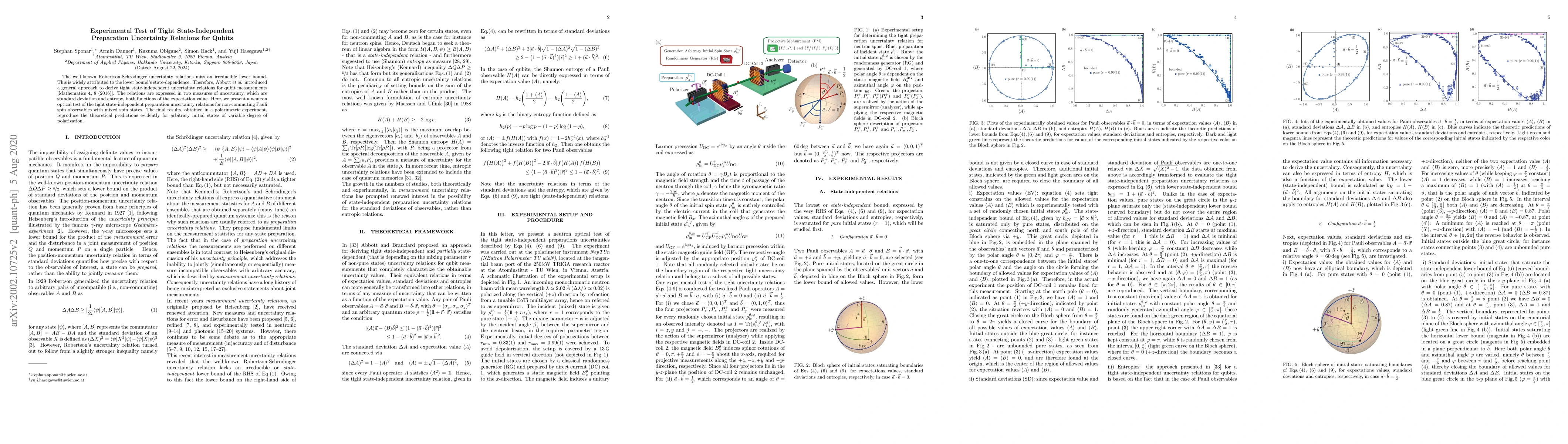 This paper experimentally tests the tight state-independent preparation uncertainty relations for qubits using neutron optics, confirming the theoretical predictions of Abbott et al. for mixed spin states and non-commuting Pauli observables. The results demonstrate the validity of these relations irrespective of the initial state's polarization.